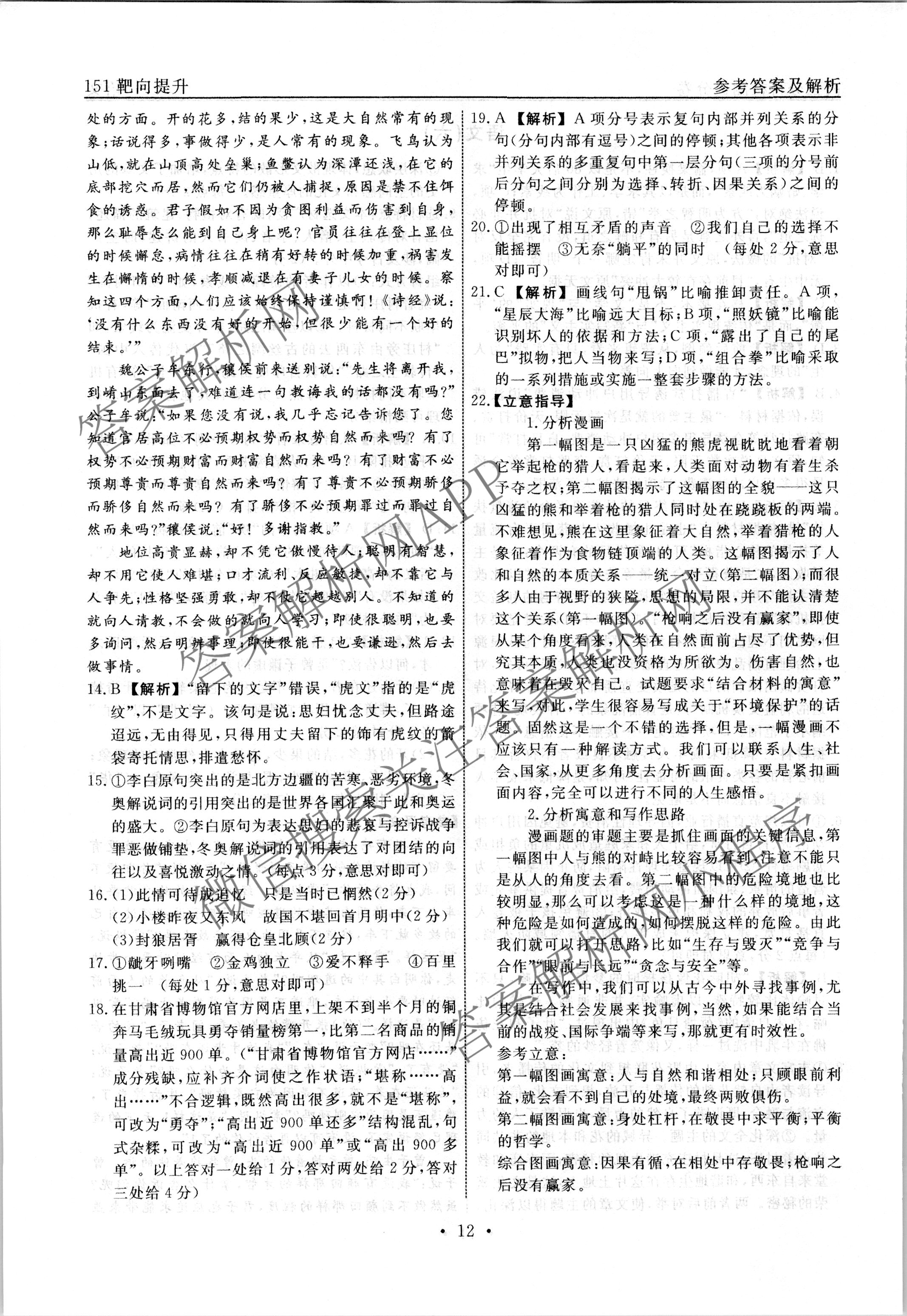 - 2022-2023(高三)[衡水名师卷]·学年度分科检测提分卷·151靶向提升(老高考)语文(六)6答案