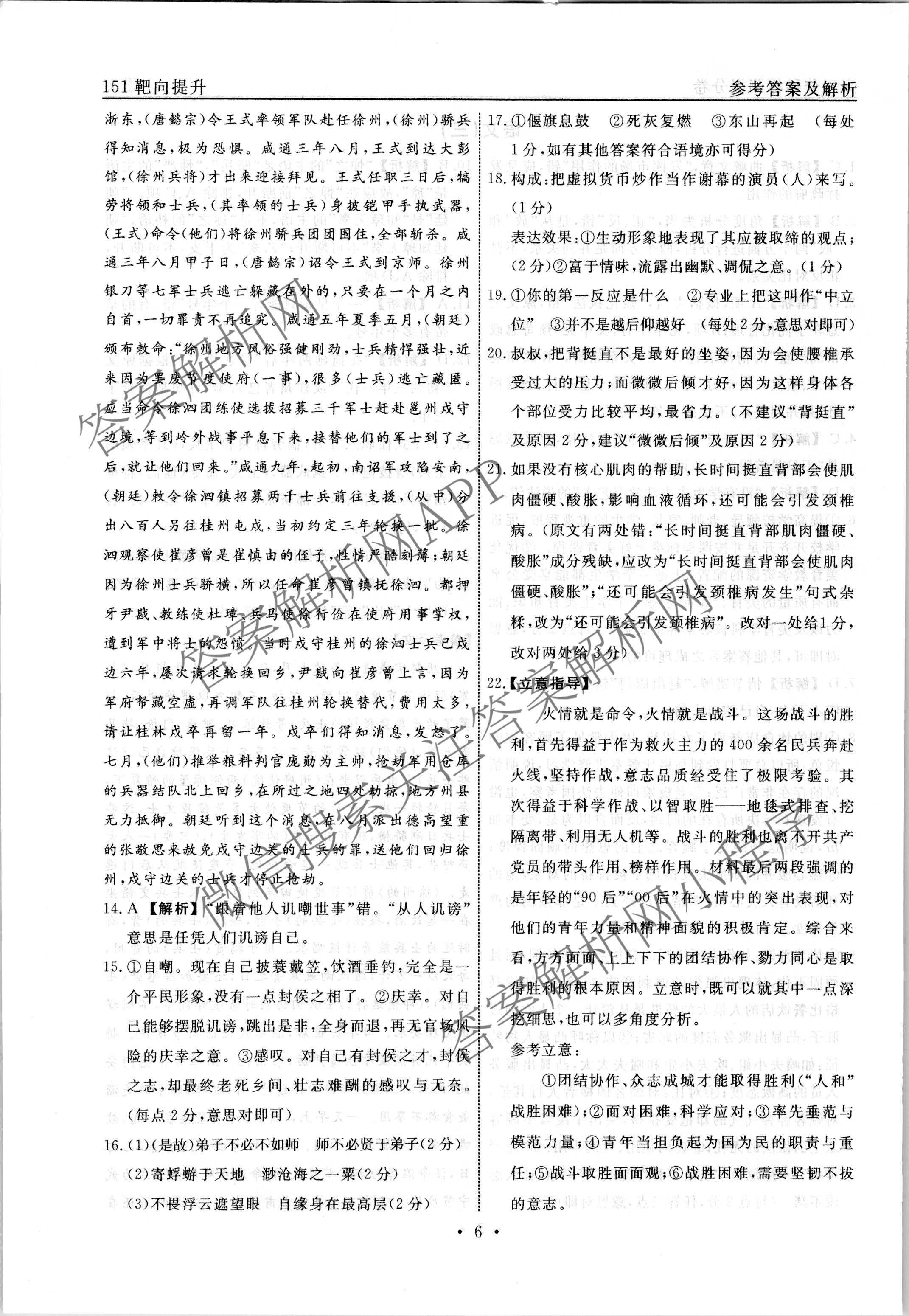 - [衡水名师卷]·2022~2023学年度(高三)分科检测提分卷·151靶向提升(老高考)语文(三)3答案