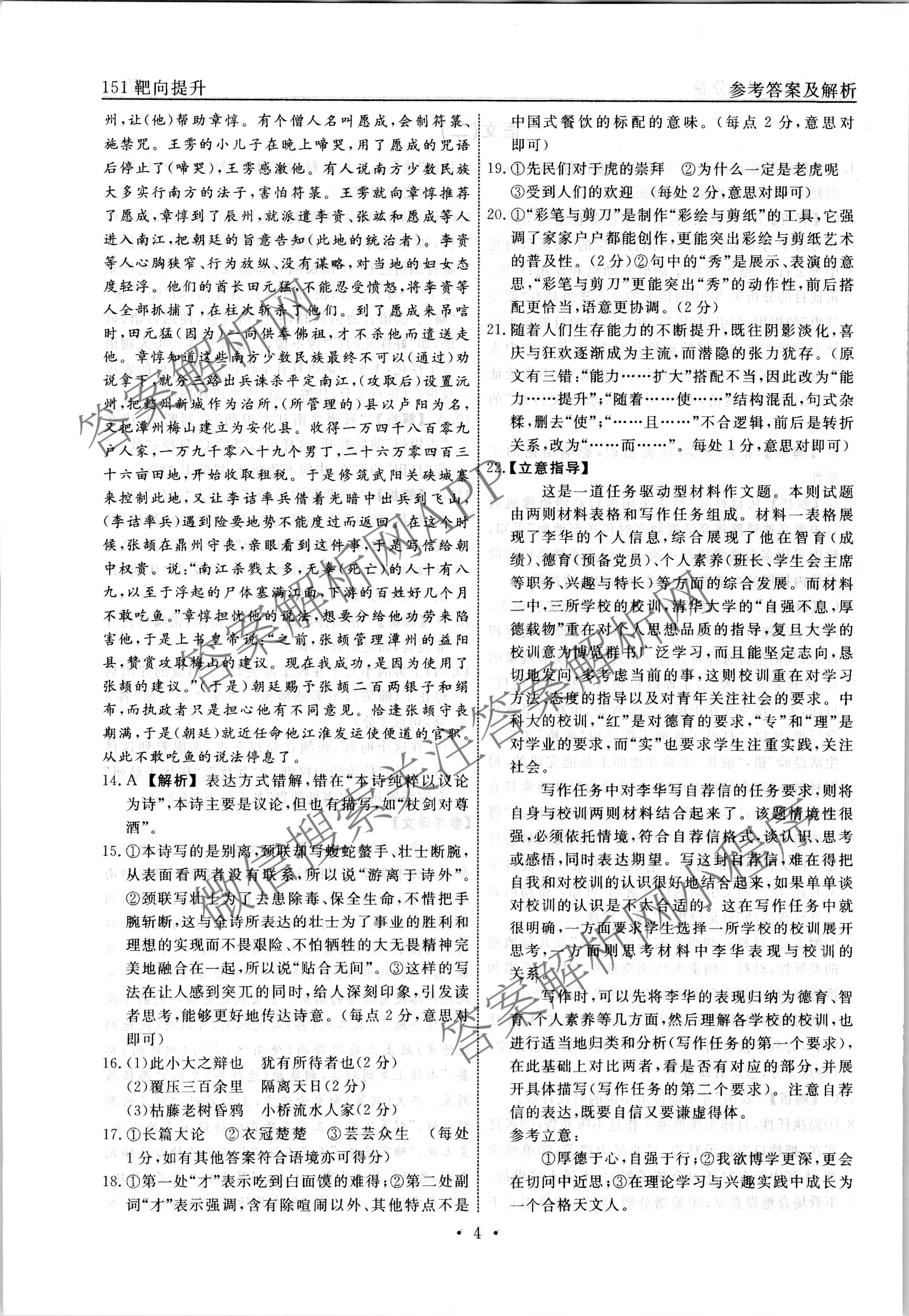 - (高三)[衡水名师卷]·2022~2023学年度分科检测提分卷·151靶向提升 语文(河北省)(二)2答案