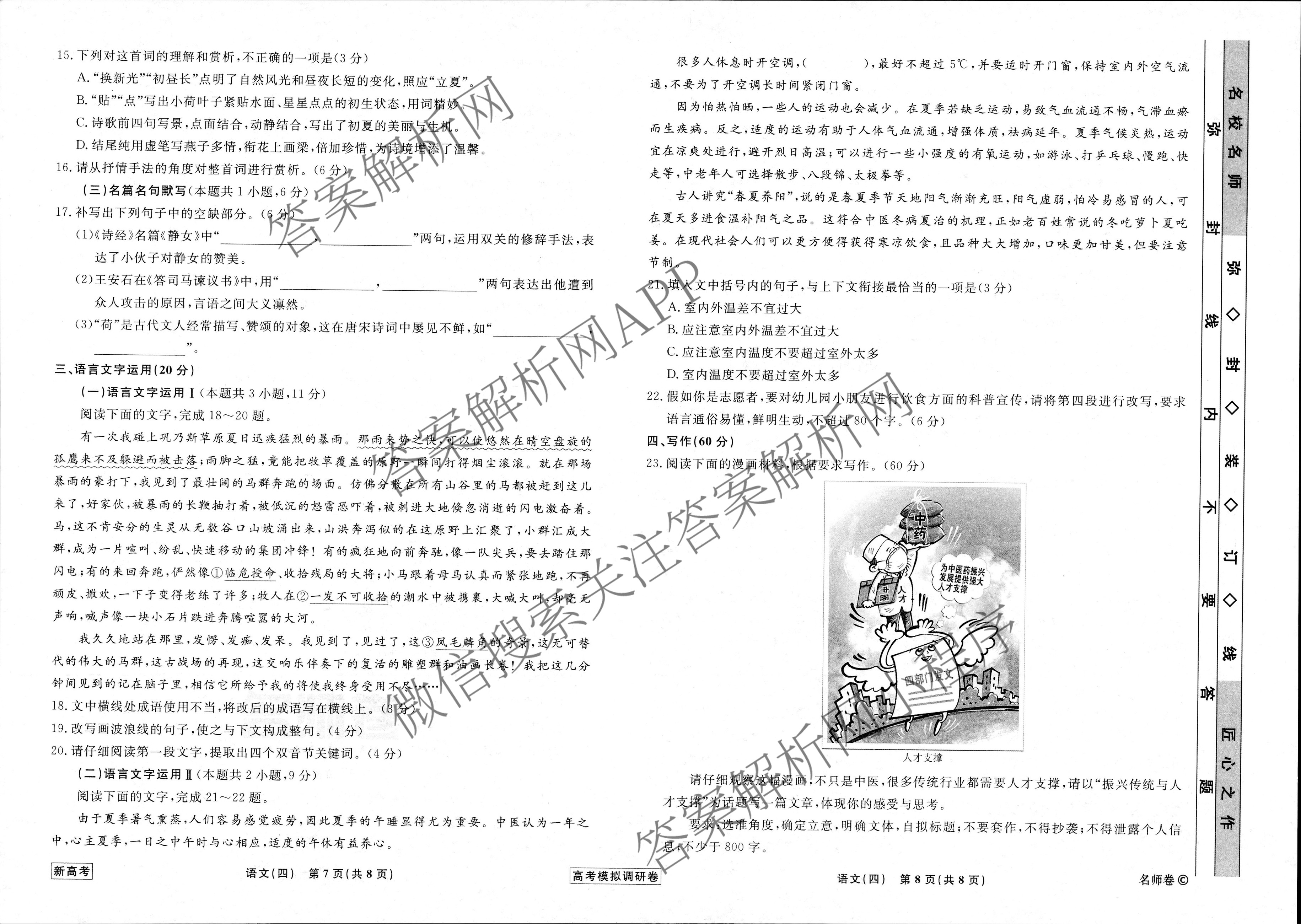 (高三)(衡水名师卷)·2022~2023高考模拟调研卷 语文(新高考)(四)4试题