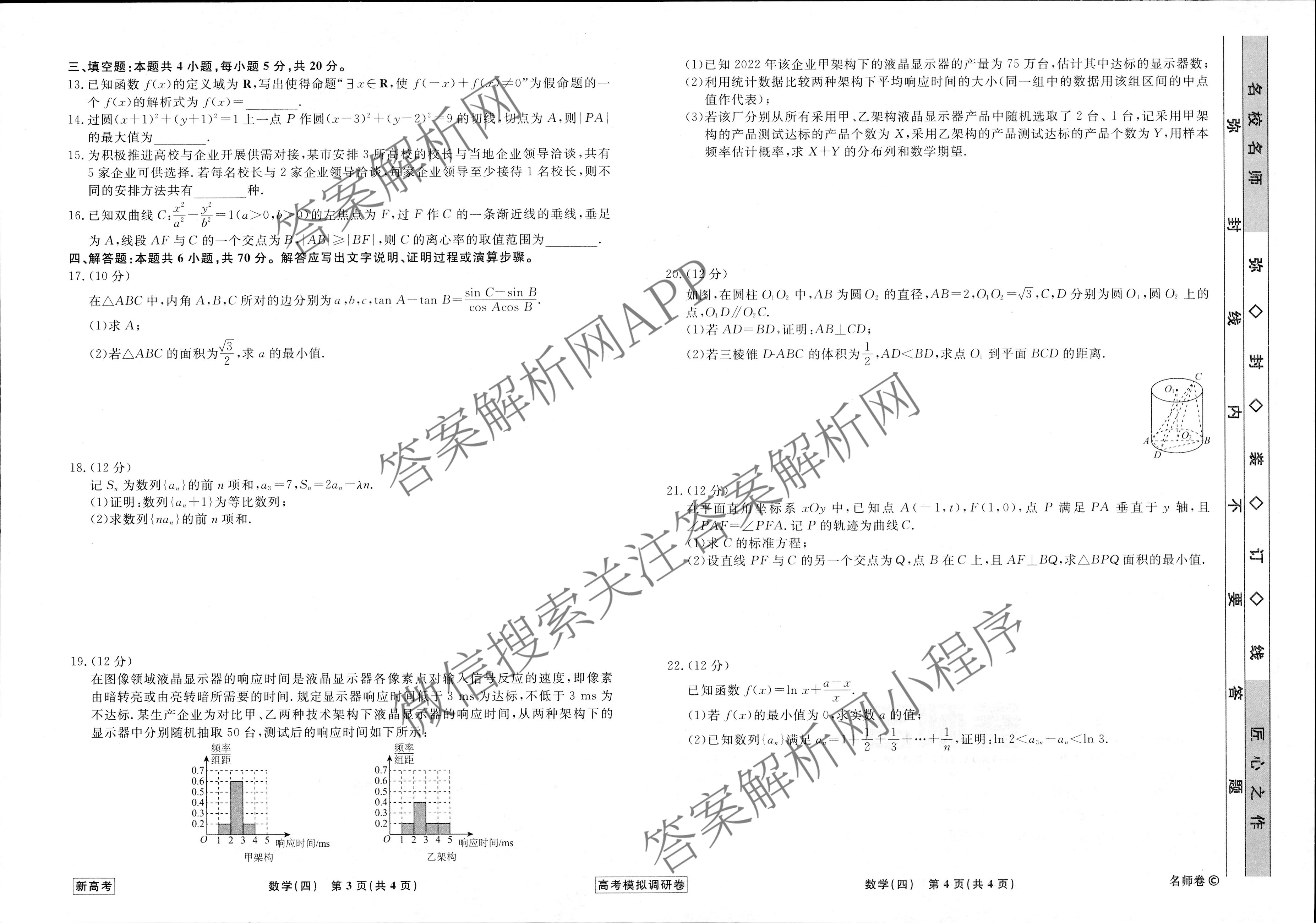 - [高三]衡水名师卷2022-2023高考模拟调研卷 数学(新高考)(四)4试题