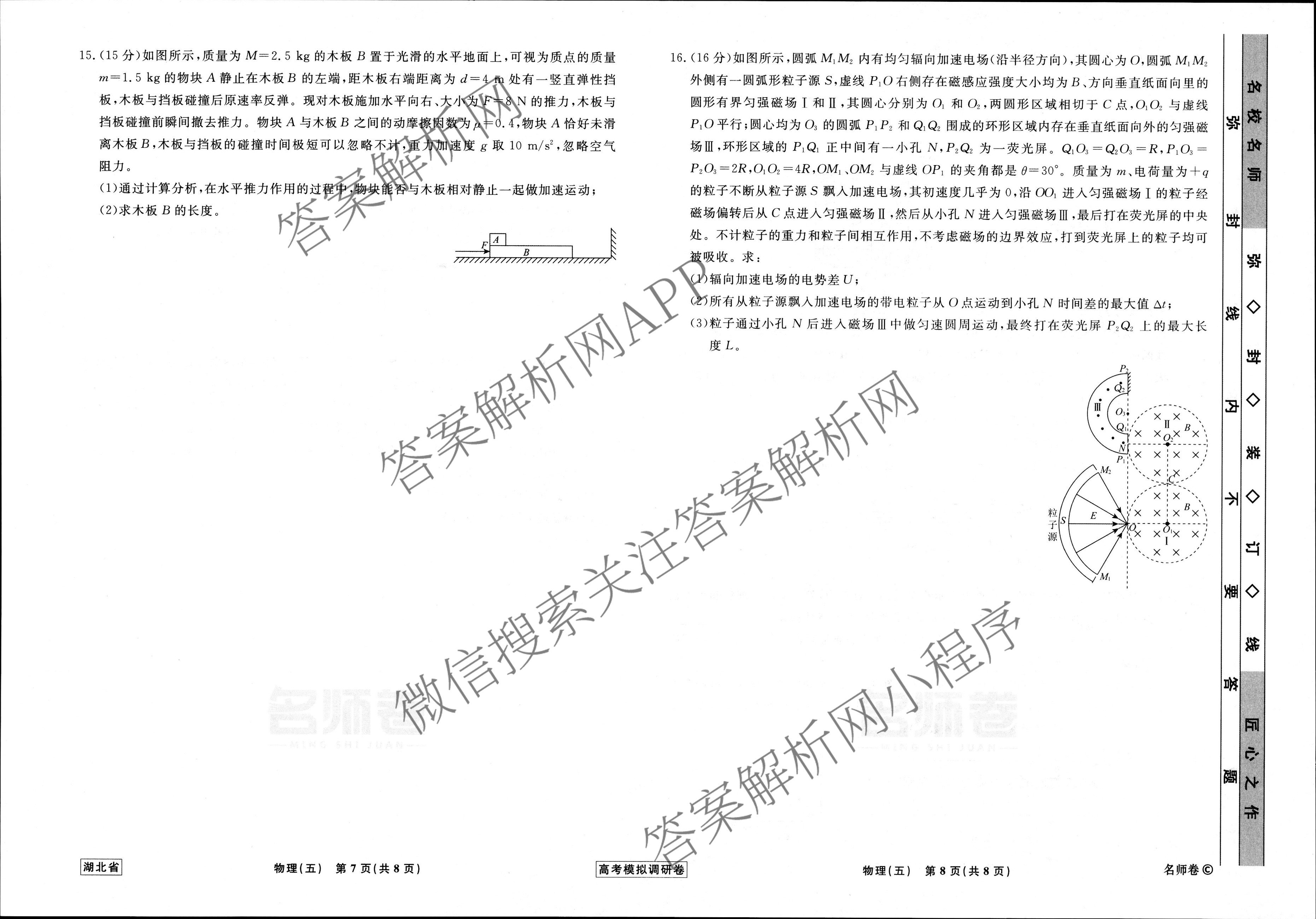 - [高三]衡水名师卷湖北省2023年高考模拟调研卷 物理(五)5答案