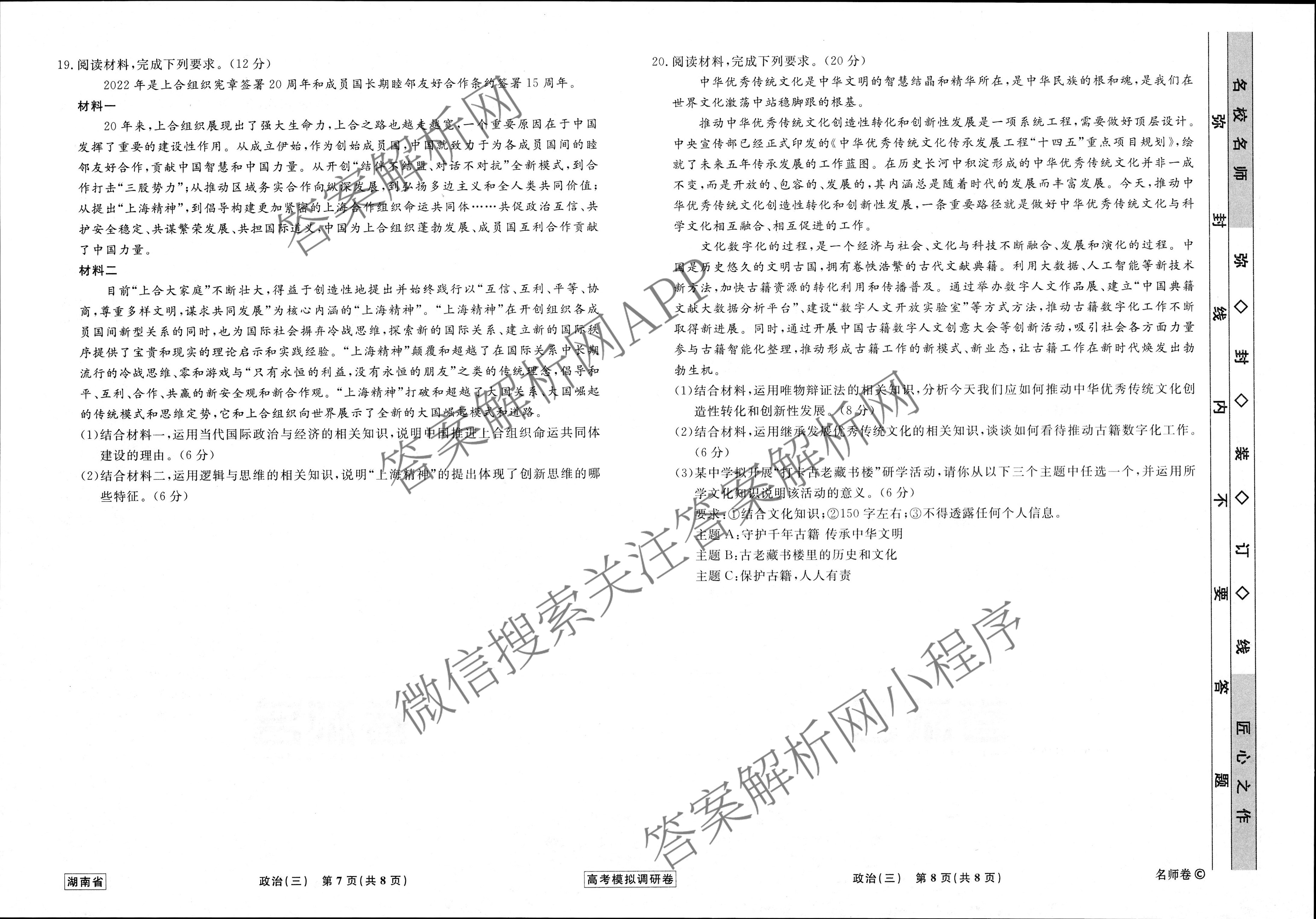 - [衡水名师卷]湖南省2023年高考模拟调研卷 政治(三)3答案