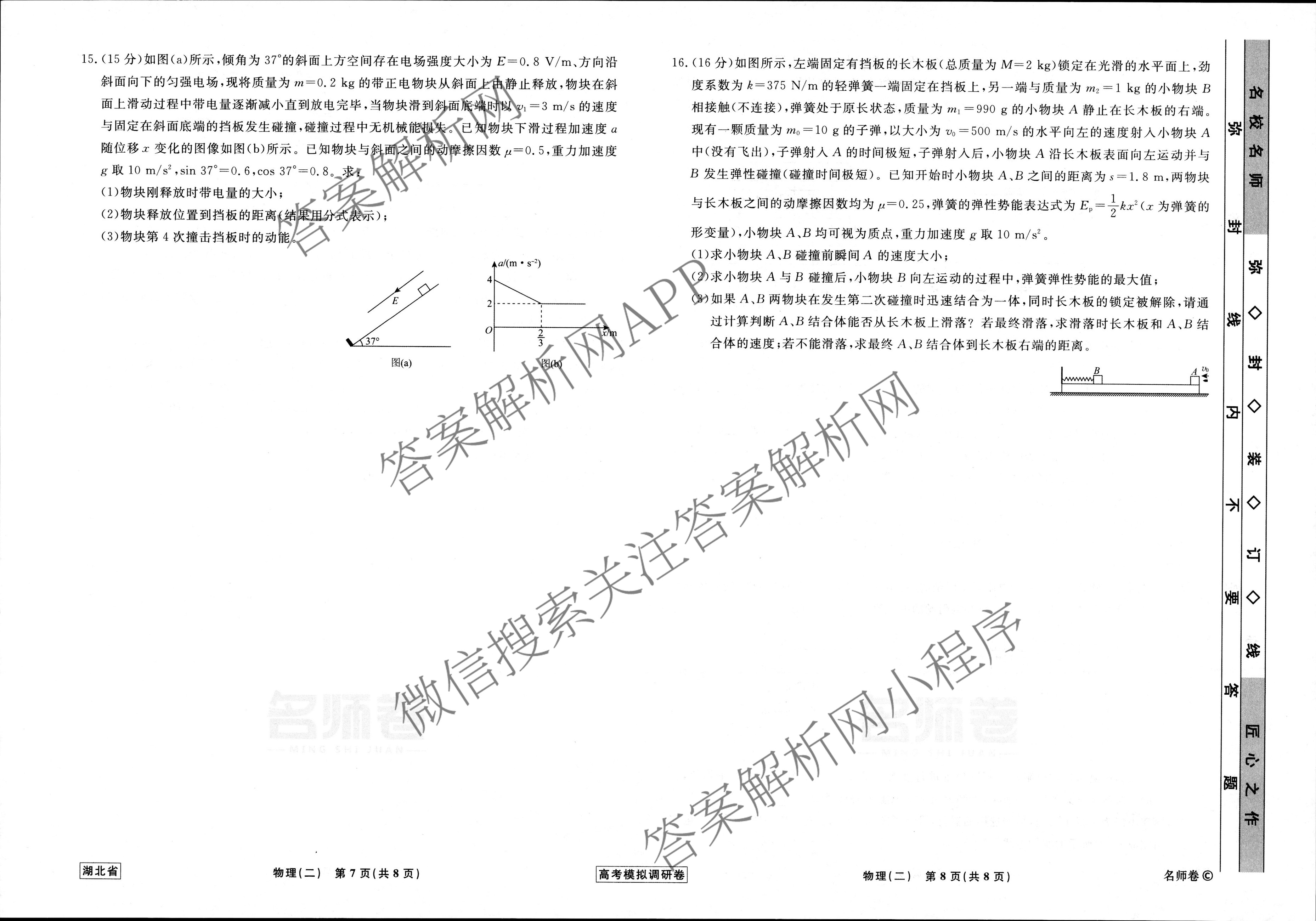 - [衡水名师卷]·湖南省2023年高考模拟调研卷 物理(二)2答案