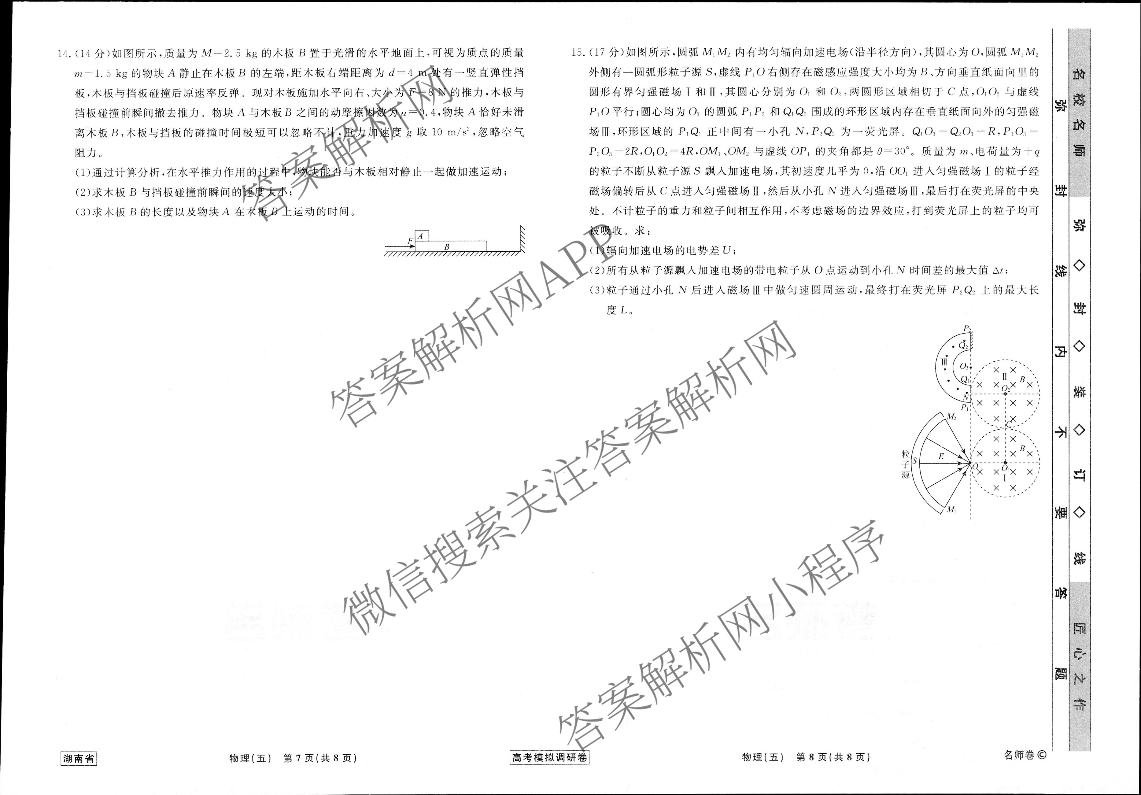 - (高三)(衡水名师卷)湖南省2023年高考模拟调研卷 物理(五)5答案