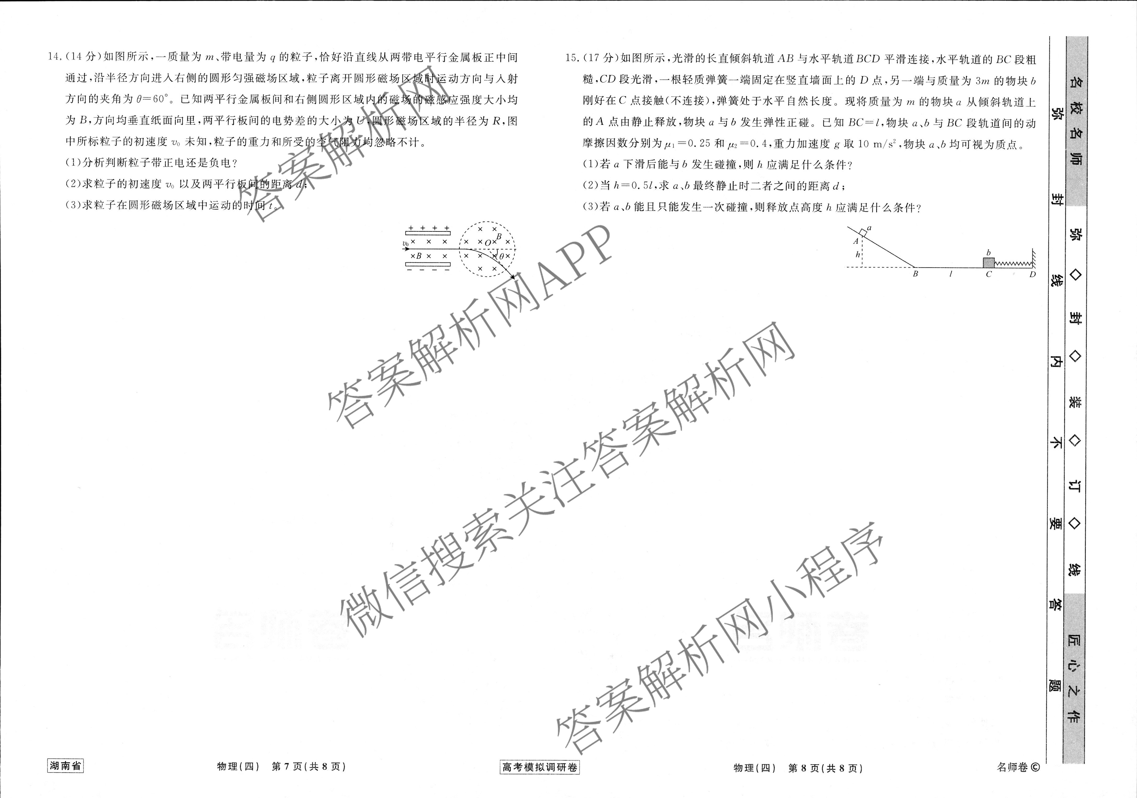 - [衡水名师卷]湖南省2023年高考模拟调研卷 物理(四)4答案