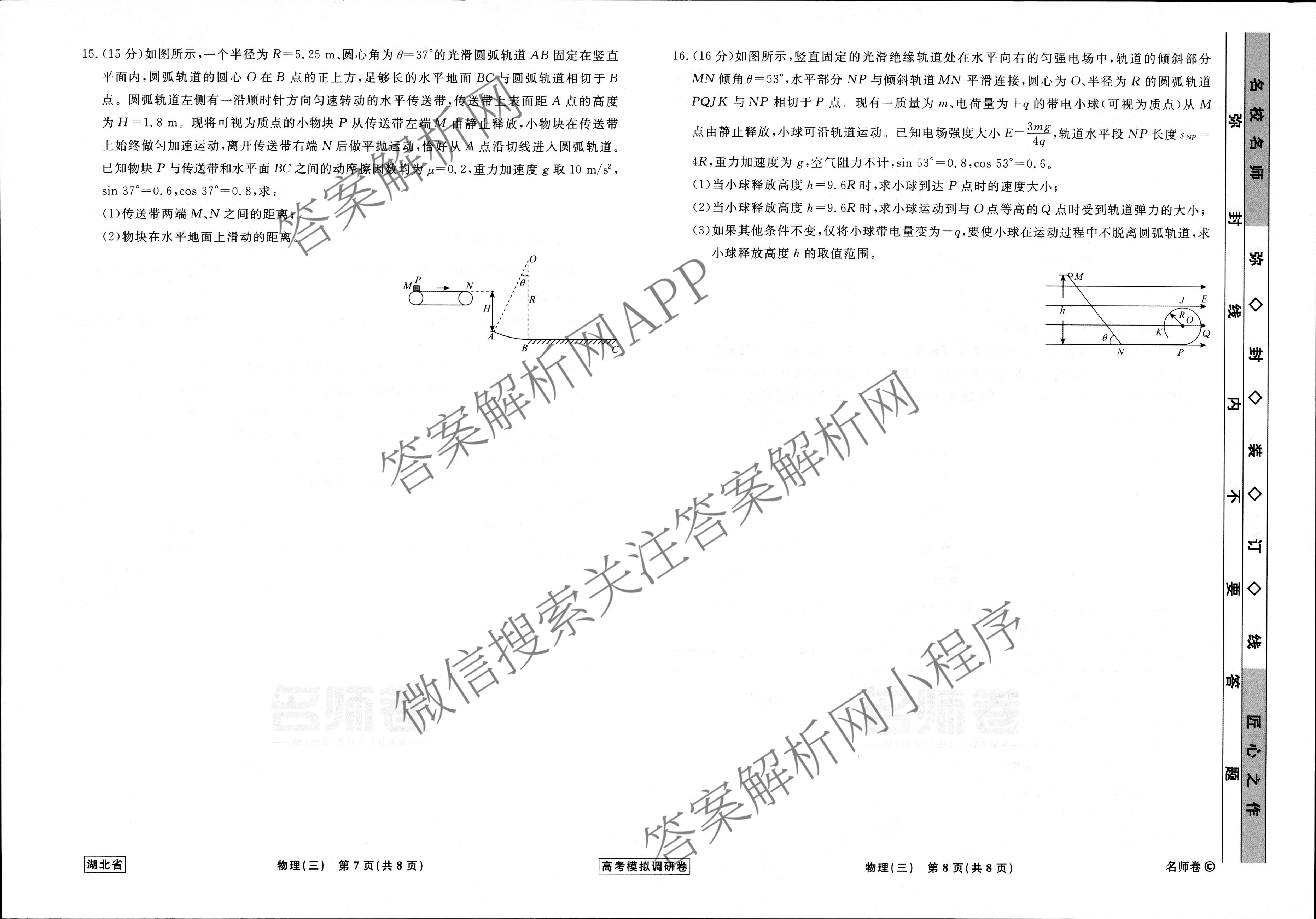 - [高三][衡水名师卷]·河北省2023年高考模拟调研卷 物理(三)3答案