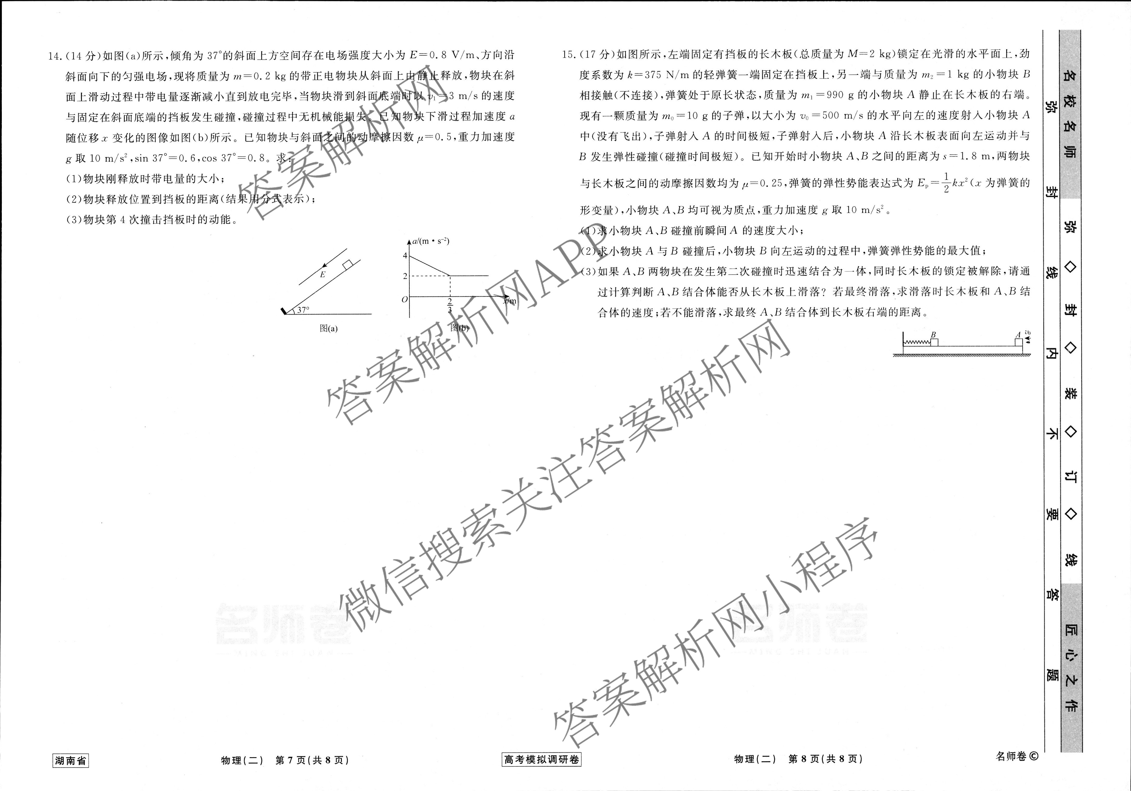 - [衡水名师卷]·湖南省2023年高考模拟调研卷 物理(二)2答案