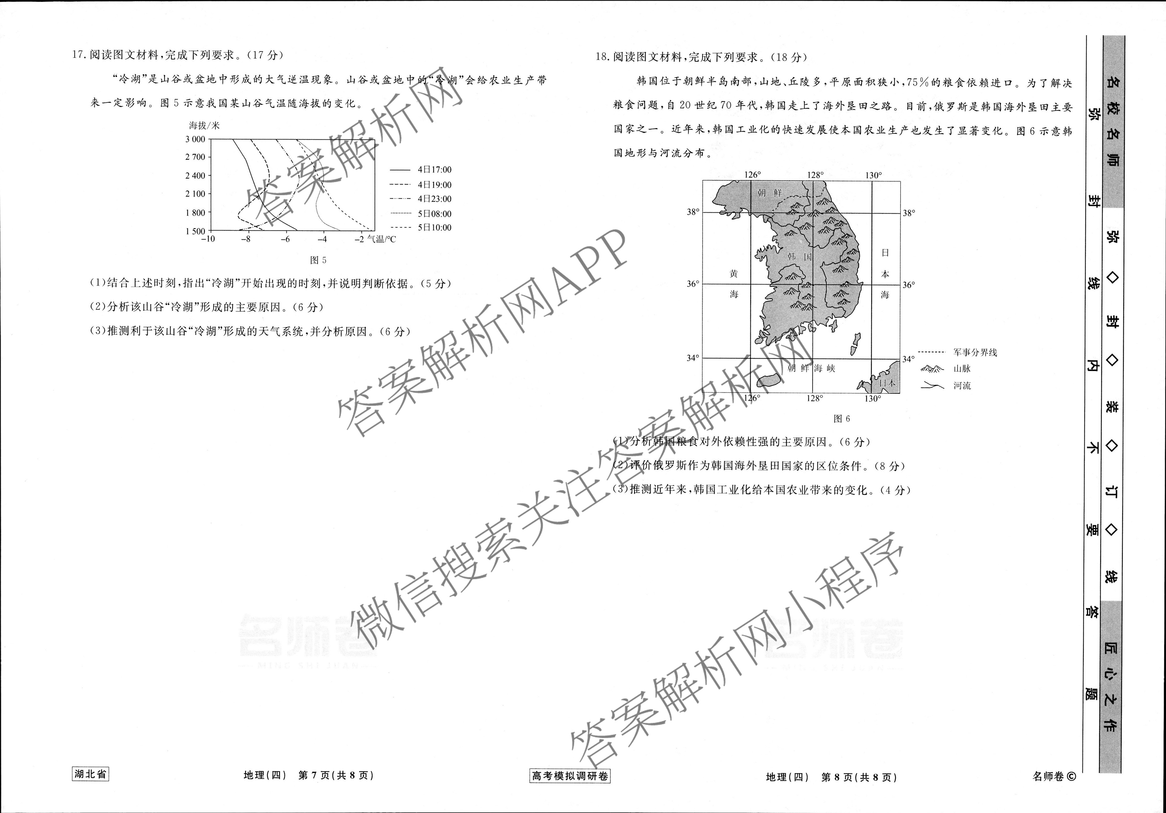 - [高三]衡水名师卷·湖北省2023年高考模拟调研卷 地理(四)4答案