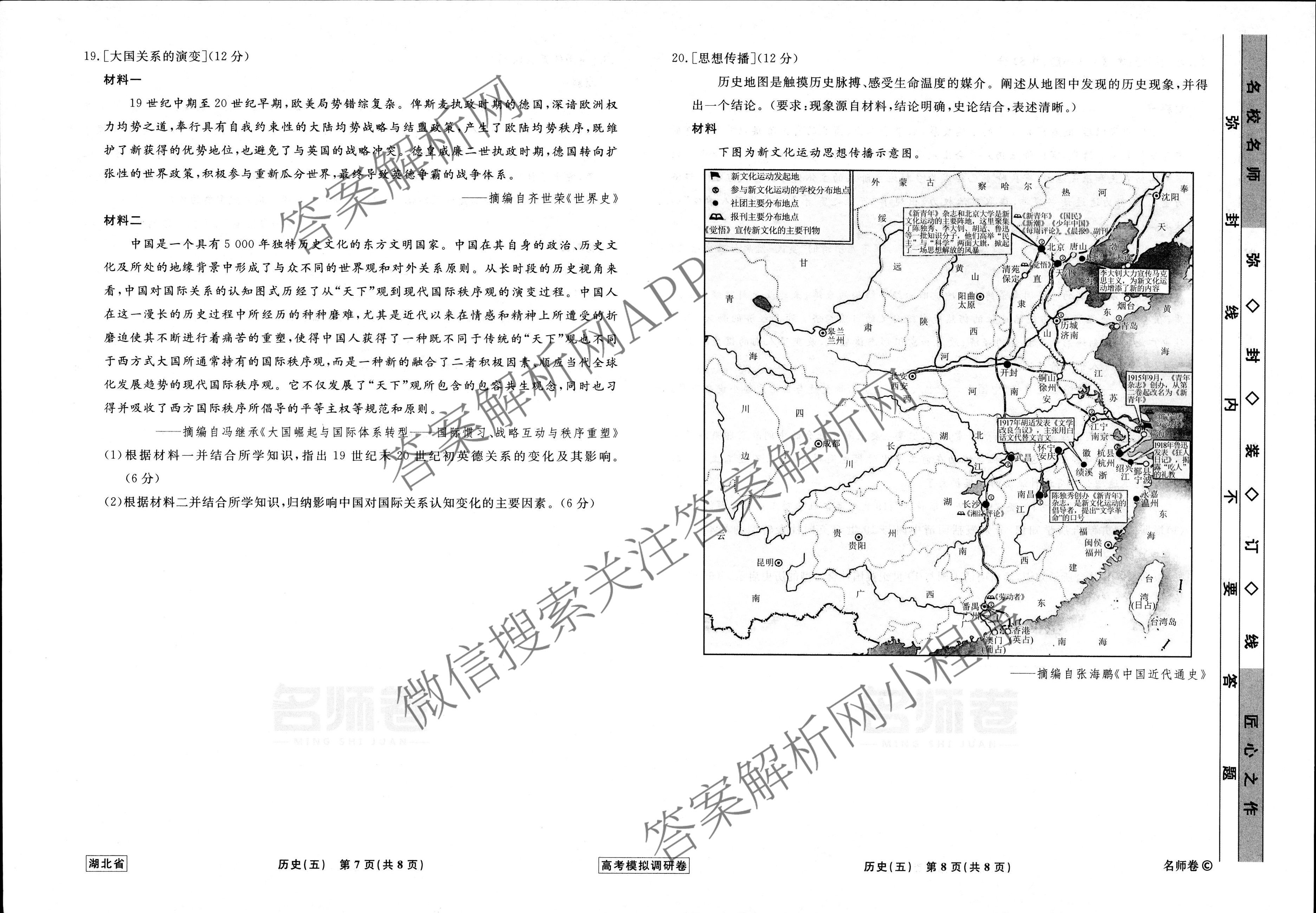 - [衡水名师卷]·湖北省2023年高考模拟调研卷 历史(五)5答案
