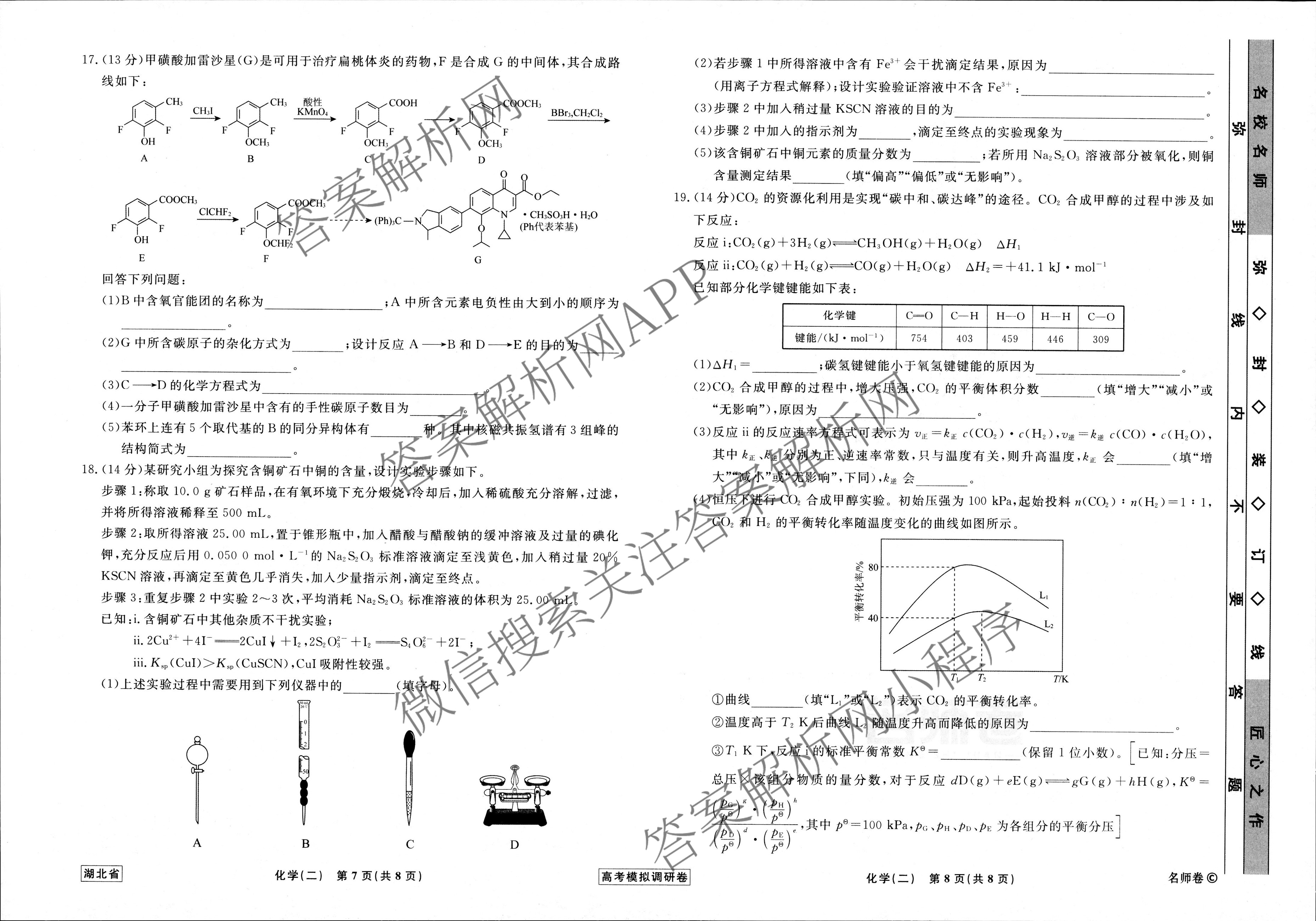 - [高三](衡水名师卷)湖北省2023年高考模拟调研卷 化学(二)2答案