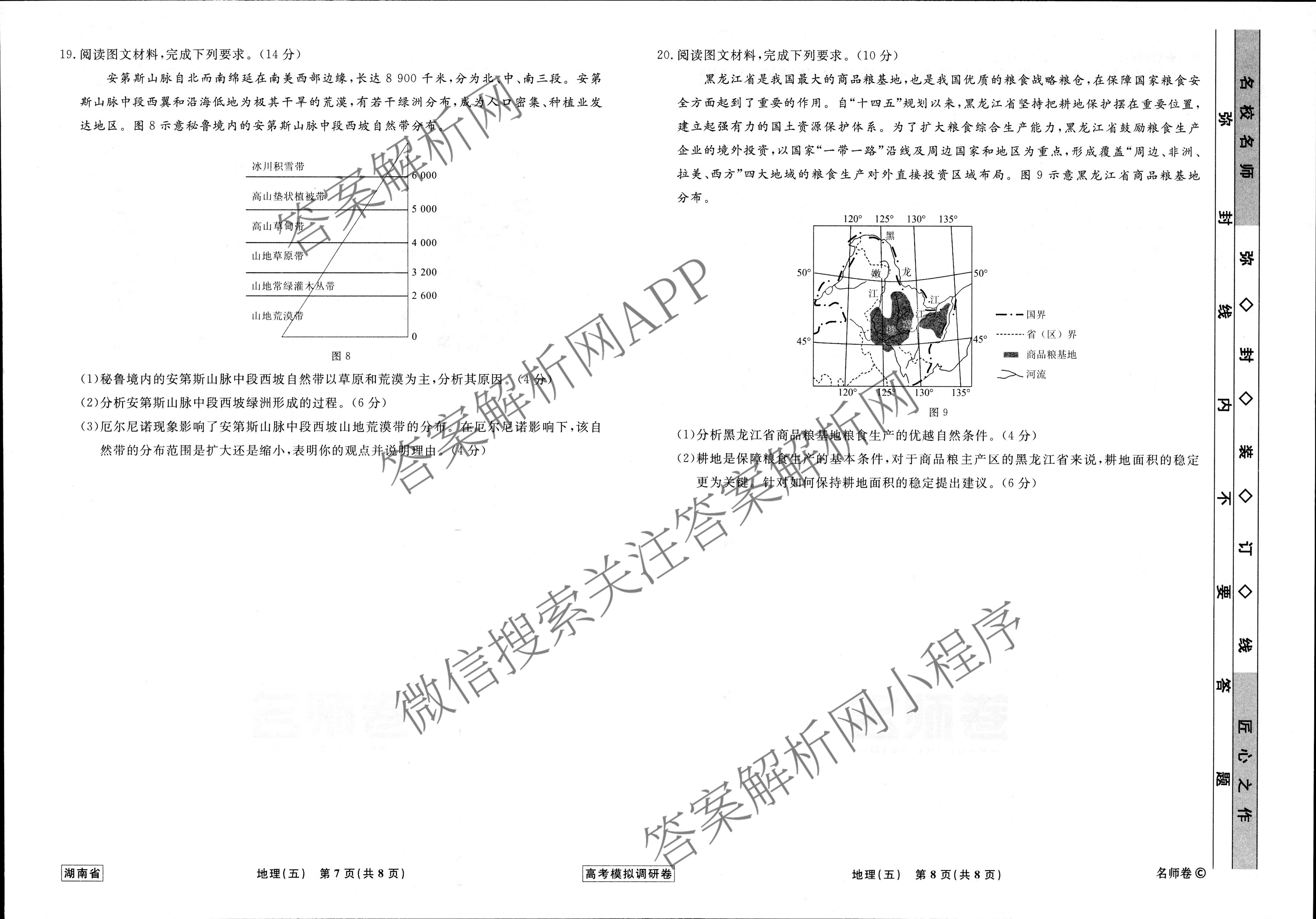衡水名师卷·湖南省2023年高考模拟调研卷 地理(五)5试题,目前分科卷答案网已经汇总了衡水名师卷·湖南省2023年高考模拟调研卷 地理(五)5试题的各科答案和试卷,获取更多衡水名师卷答案解析,请在关注本站。