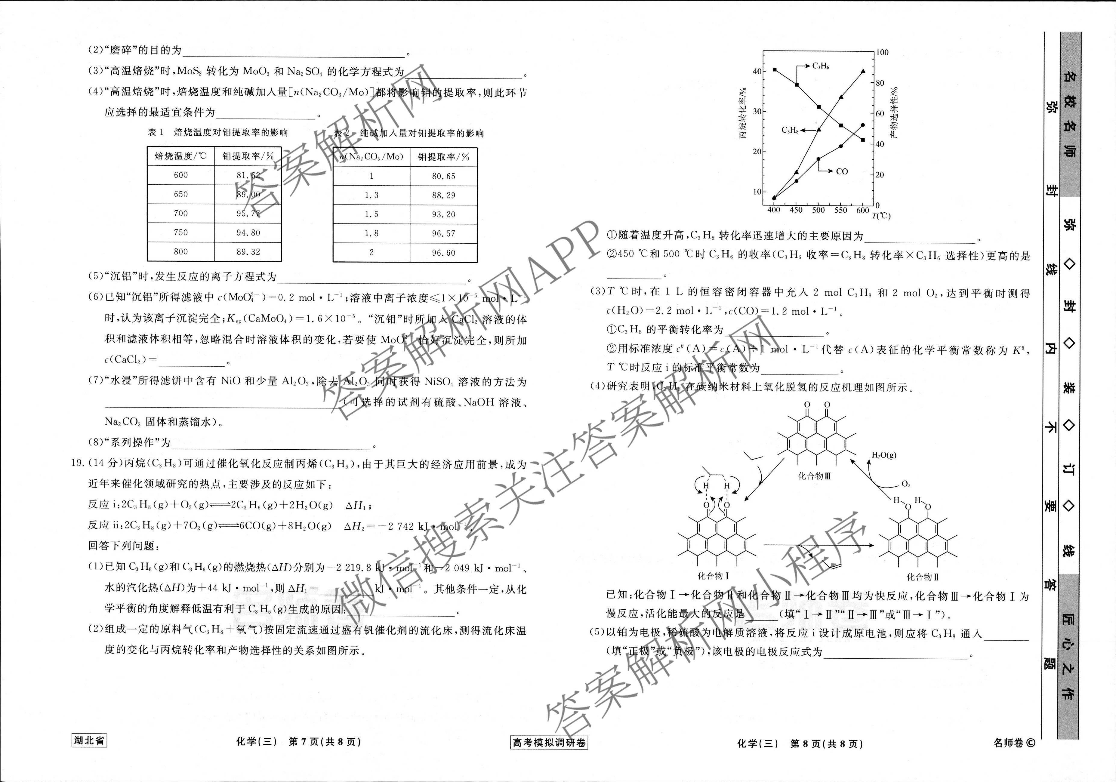 衡水名师卷·湖北省2023年高考模拟调研卷 化学(三)3试题,目前分科卷答案网已经汇总了衡水名师卷·湖北省2023年高考模拟调研卷 化学(三)3试题的各科答案和试卷,获取更多衡水名师卷答案解析,请在关注本站。