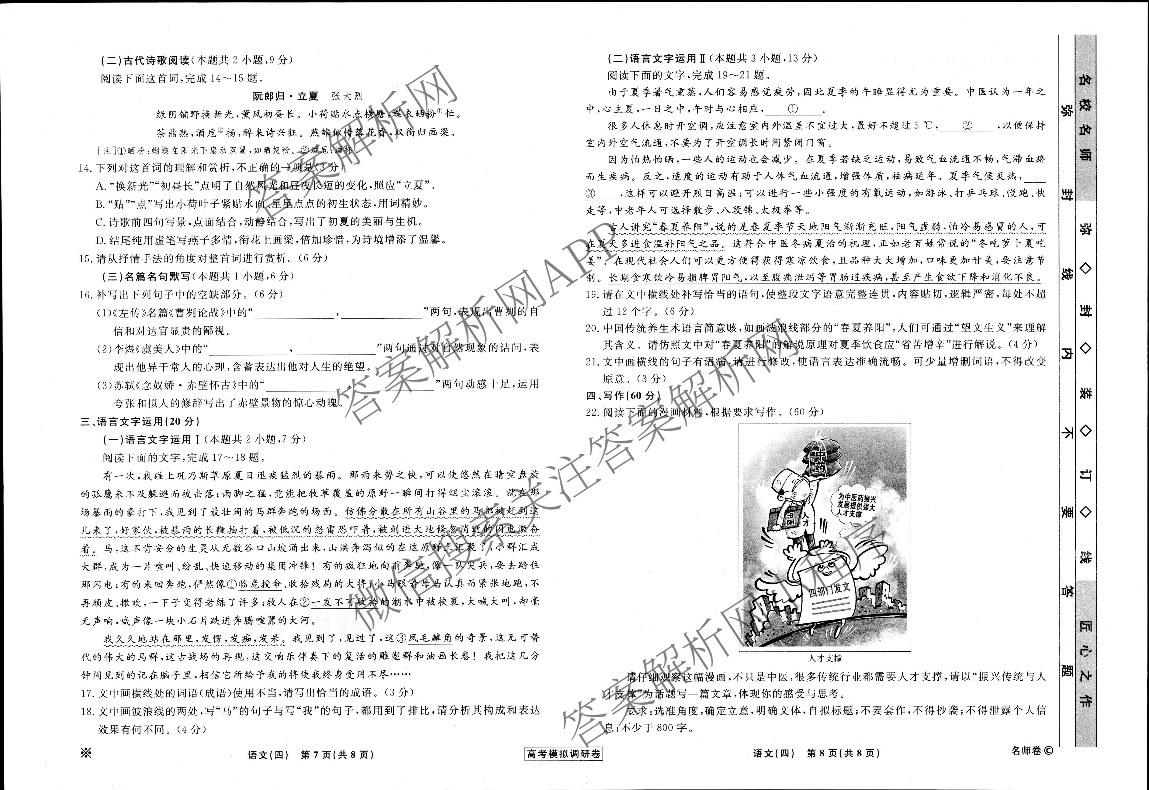 衡水名师卷·2022-2023高考模拟调研卷 语文(※)(四)4试题,目前分科卷答案网已经汇总了衡水名师卷·2022-2023高考模拟调研卷 语文(※)(四)4试题的各科答案和试卷,获取更多衡水名师卷答案解析,请在关注本站。