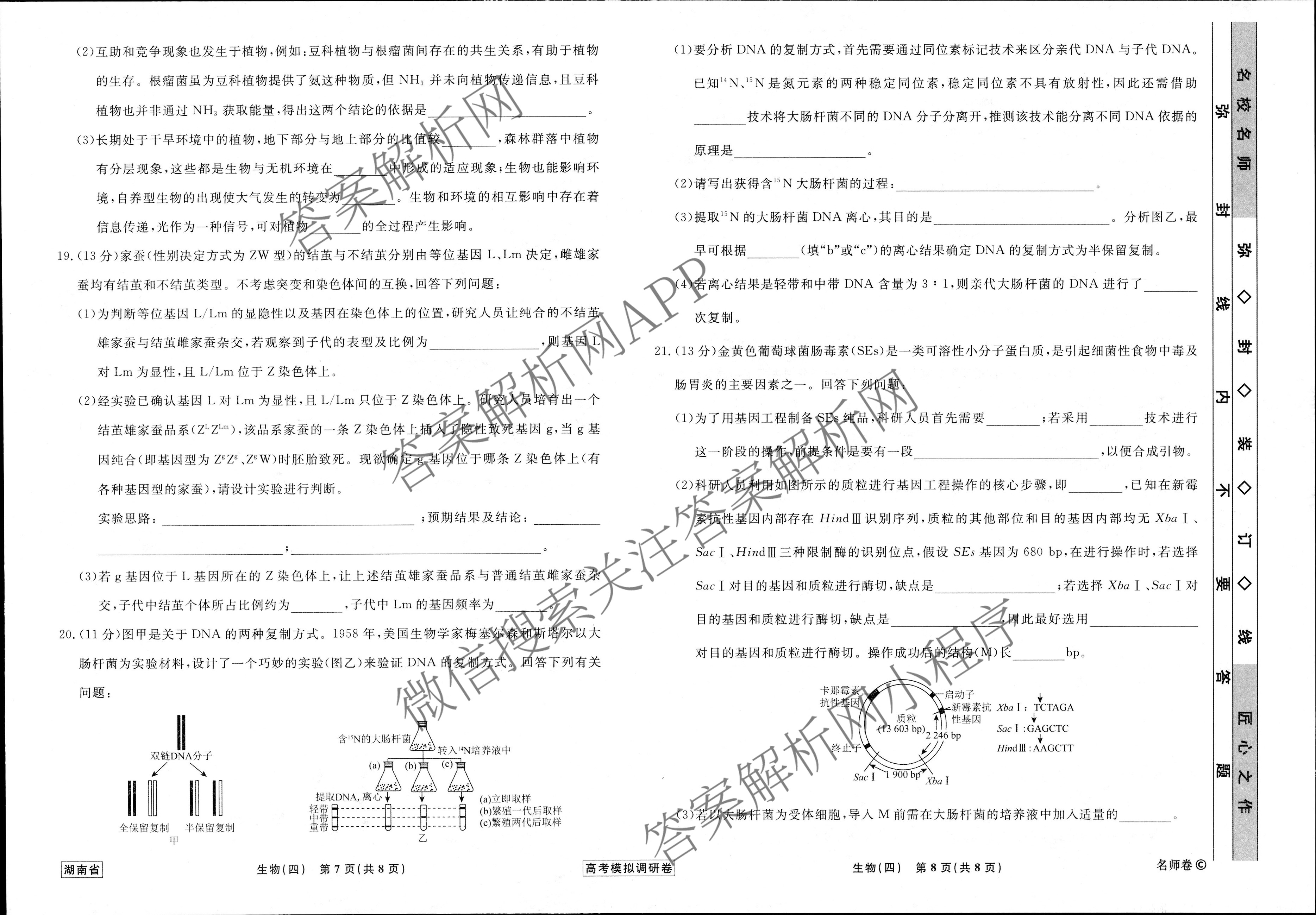 衡水名师卷·湖南省2023年高考模拟调研卷 生物(四)4试题,目前分科卷答案网已经汇总了衡水名师卷·湖南省2023年高考模拟调研卷 生物(四)4试题的各科答案和试卷,获取更多衡水名师卷答案解析,请在关注本站。
