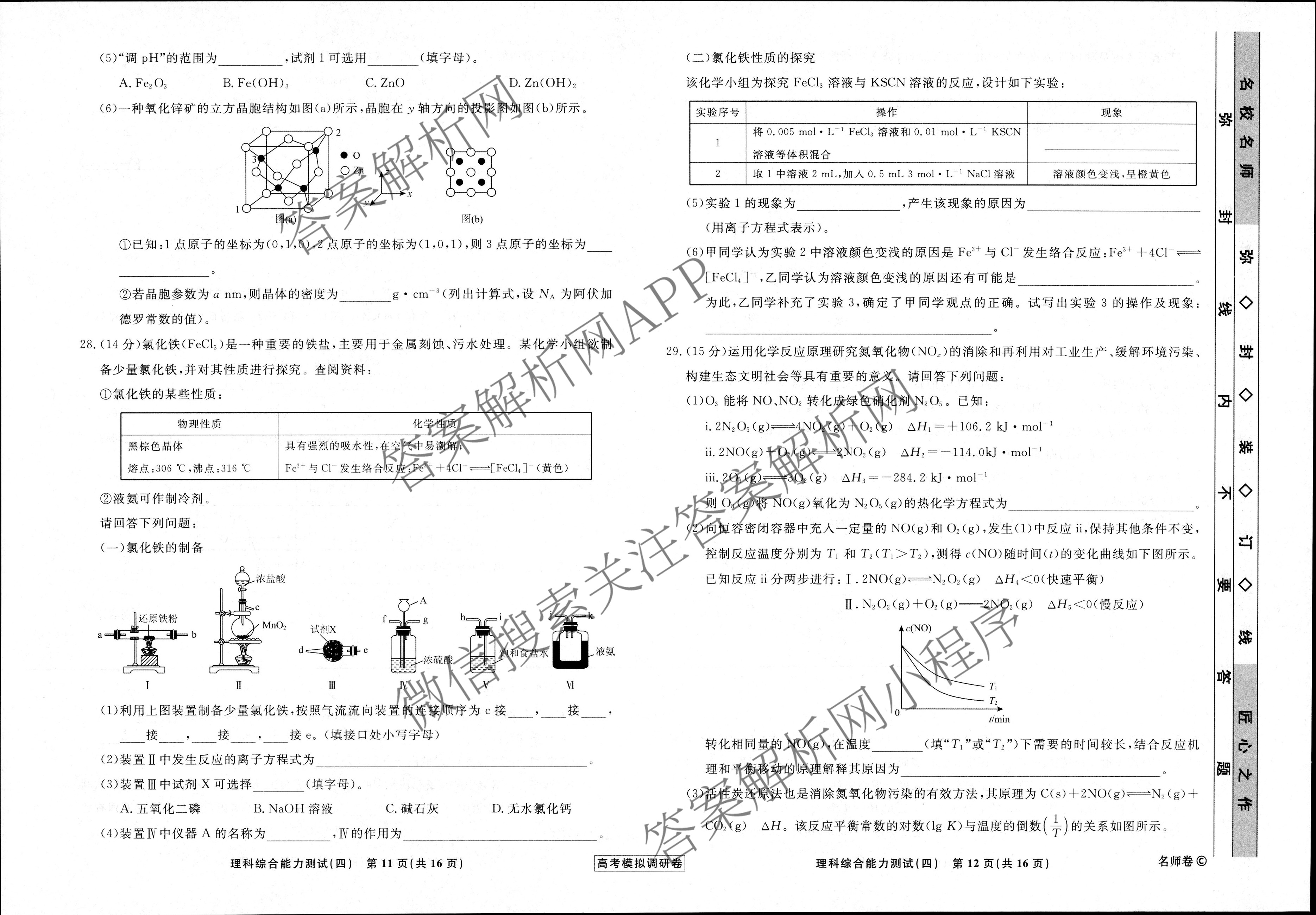 - [高三](衡水名师卷)·湖南省2023年高考模拟调研卷 化学(四)4答案