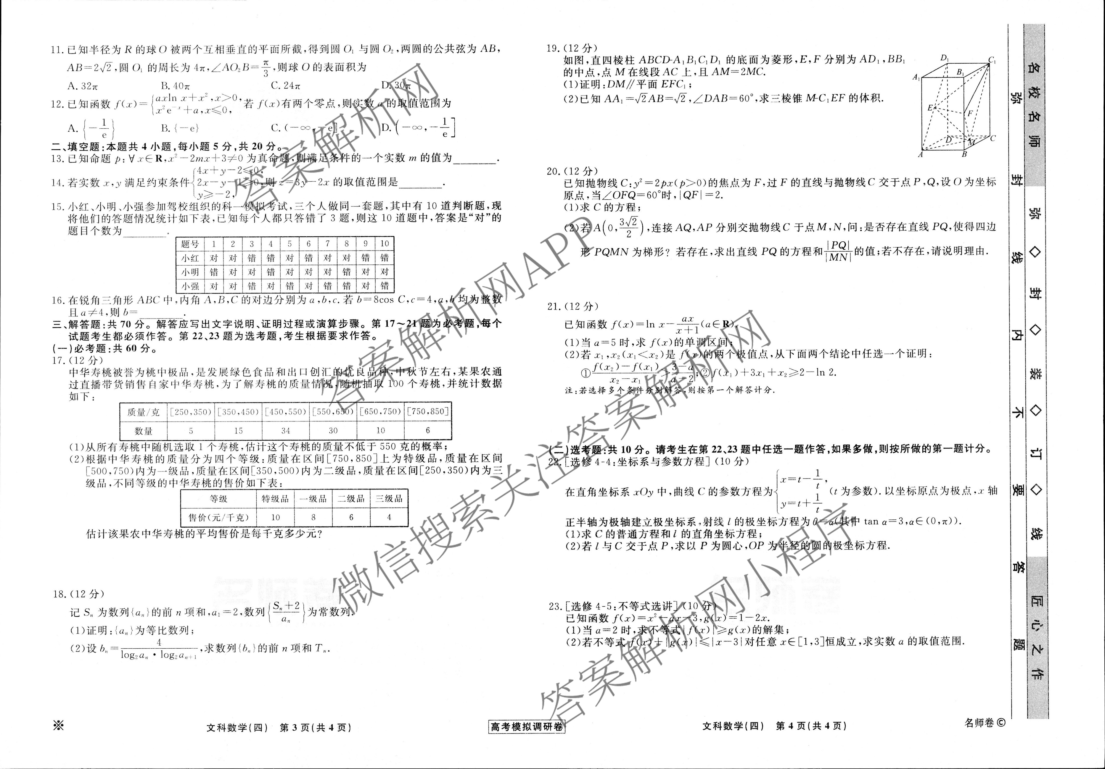 - [高三](衡水名师卷)2022~2023高考模拟调研卷 文数(实心◇)(四)4答案