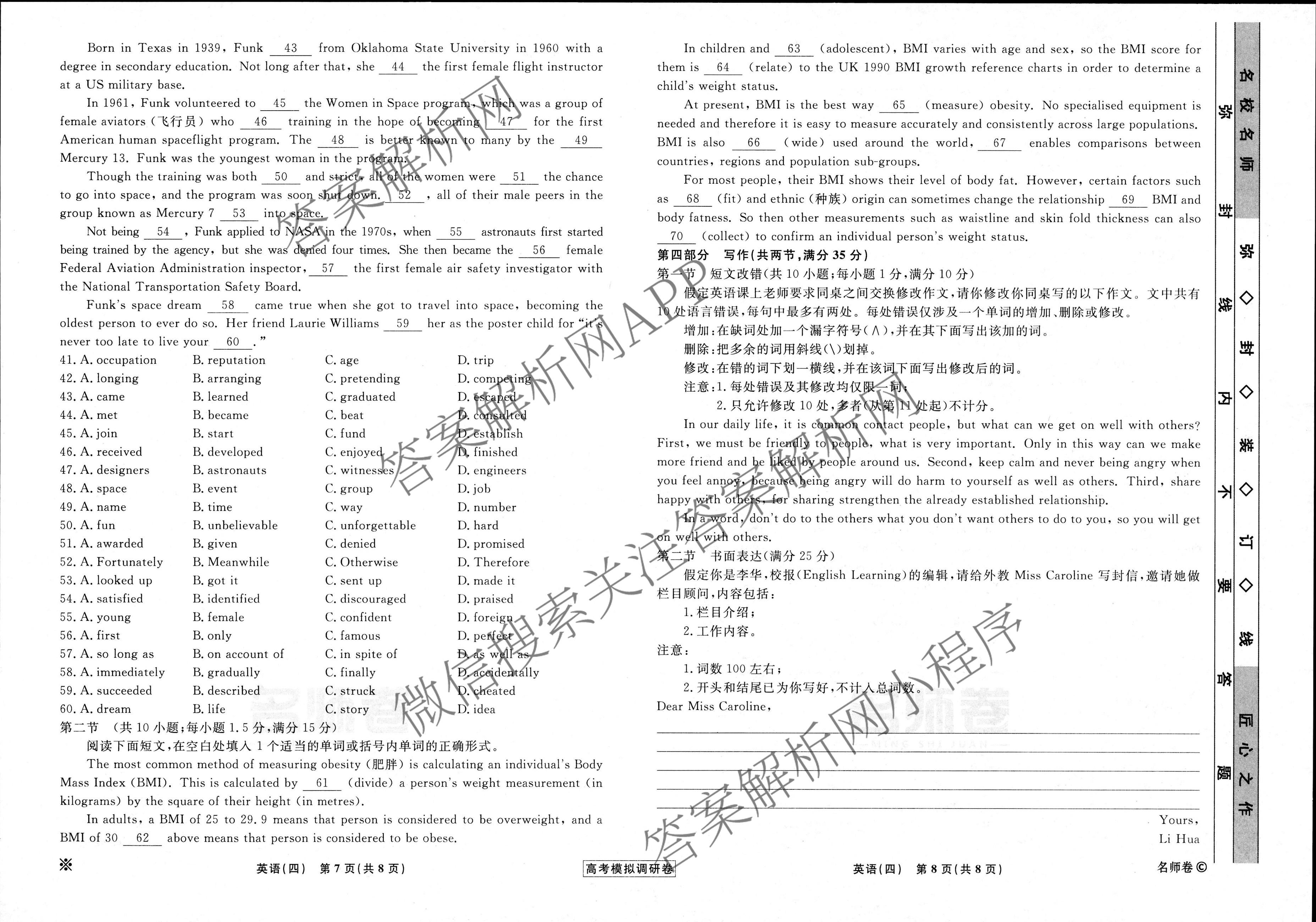 - (高三)[衡水名师卷]2022~2023高考模拟调研卷 英语(新高考)(四)4答案