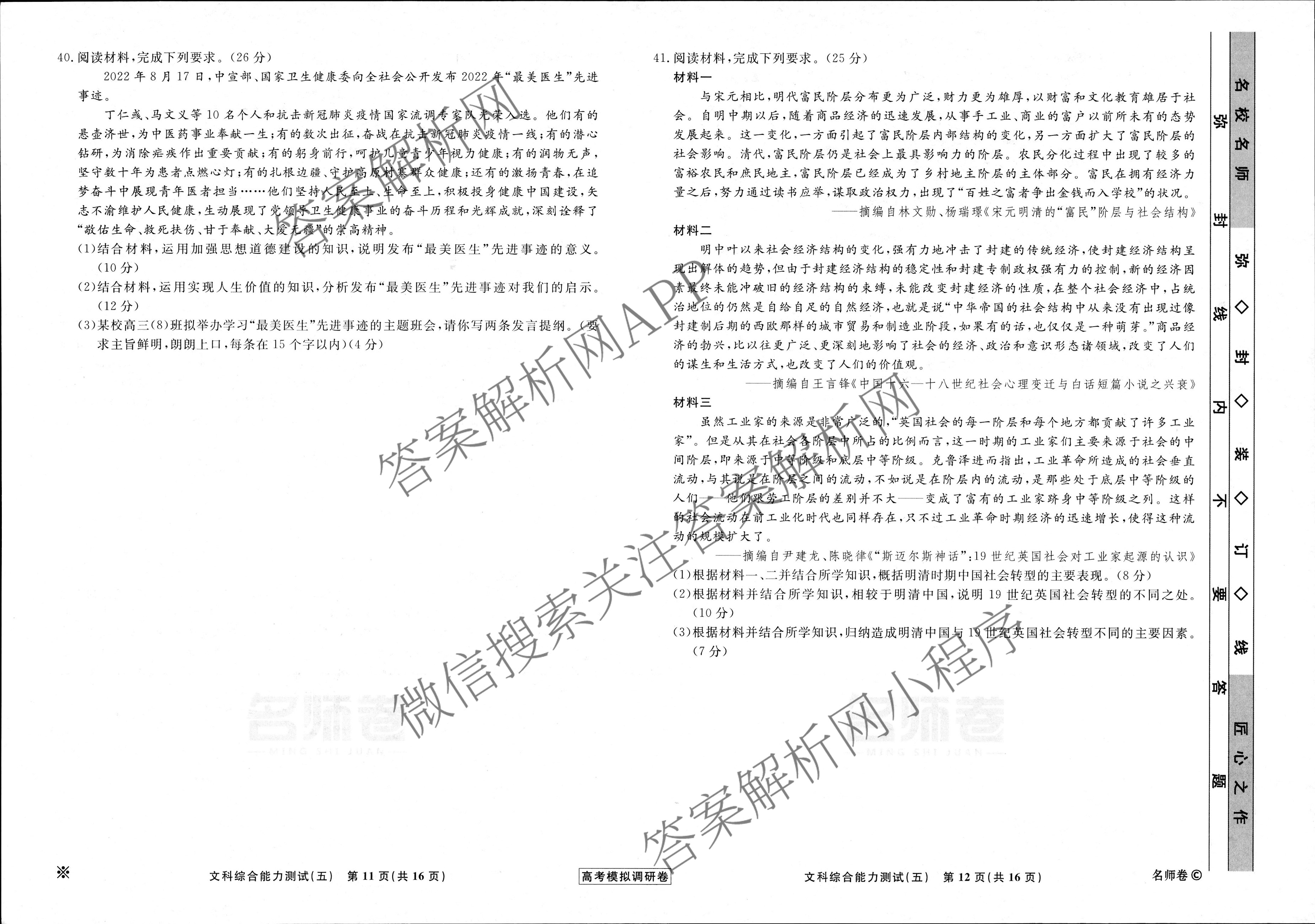 - (衡水名师卷)·2022~2023高考模拟调研卷 文综(※)(五)5答案