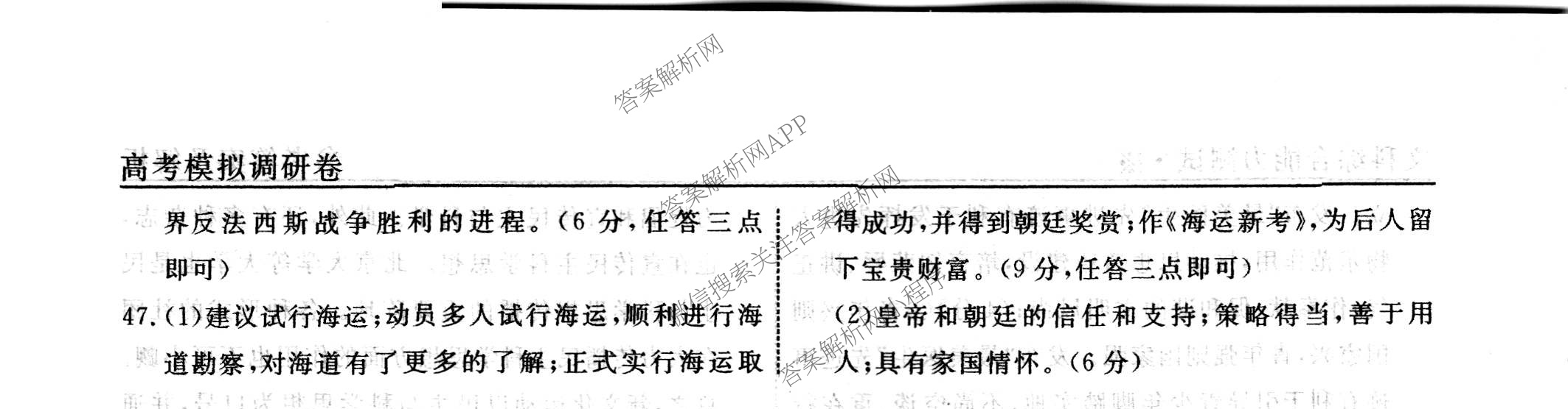 - [高三](衡水名师卷)·湖南省2023年高考模拟调研卷 历史(五)5答案