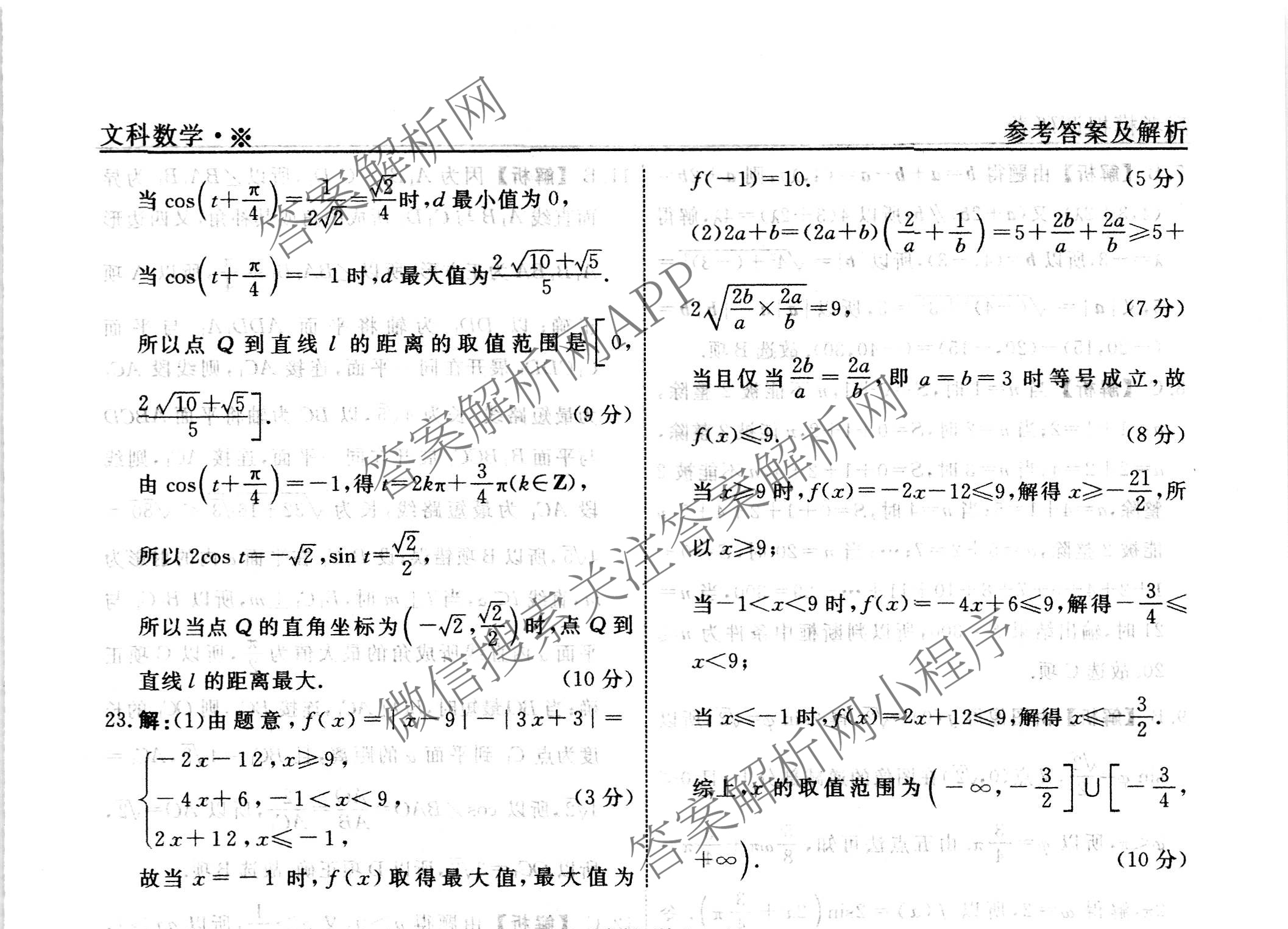 - [衡水名师卷]·2022~2023高考模拟调研卷 文数(※)(二)2答案