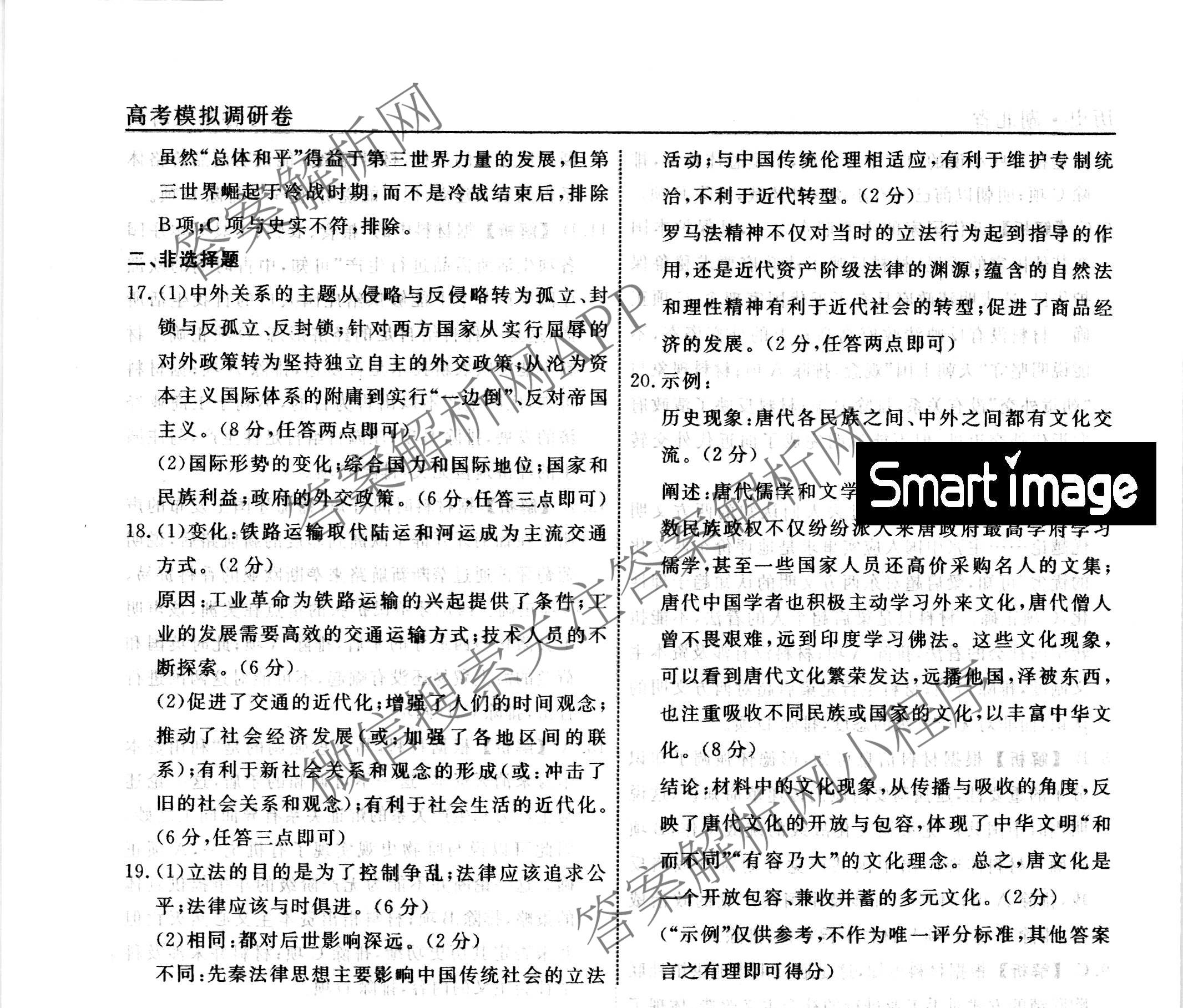 - [高三](衡水名师卷)湖南省2023年高考模拟调研卷 历史(四)4答案