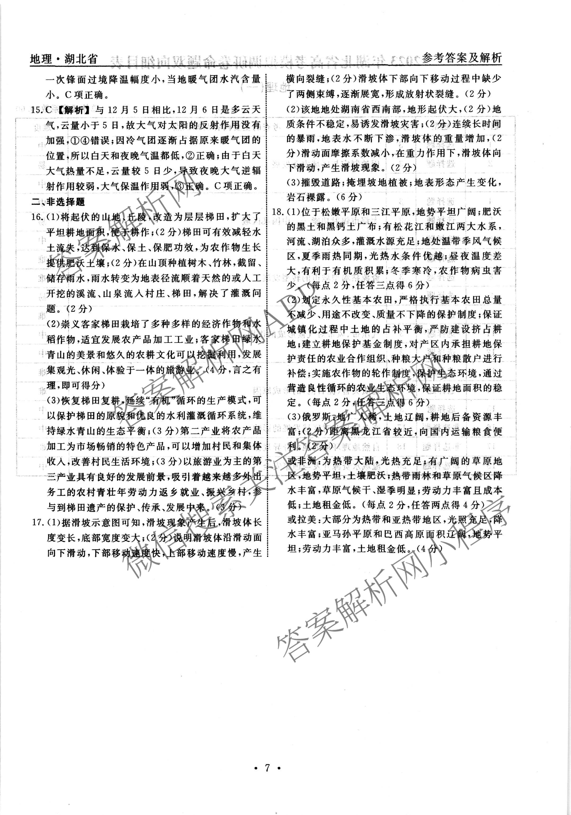 - 高三[衡水名师卷]湖北省2023年高考模拟调研卷 地理(五)5答案