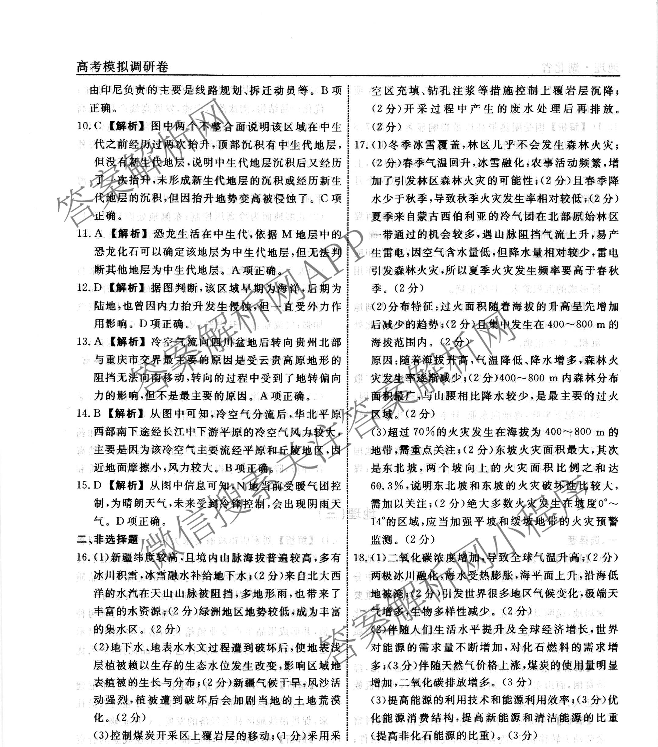 - (高三)(衡水名师卷)湖北省2023年高考模拟调研卷 地理(三)3答案