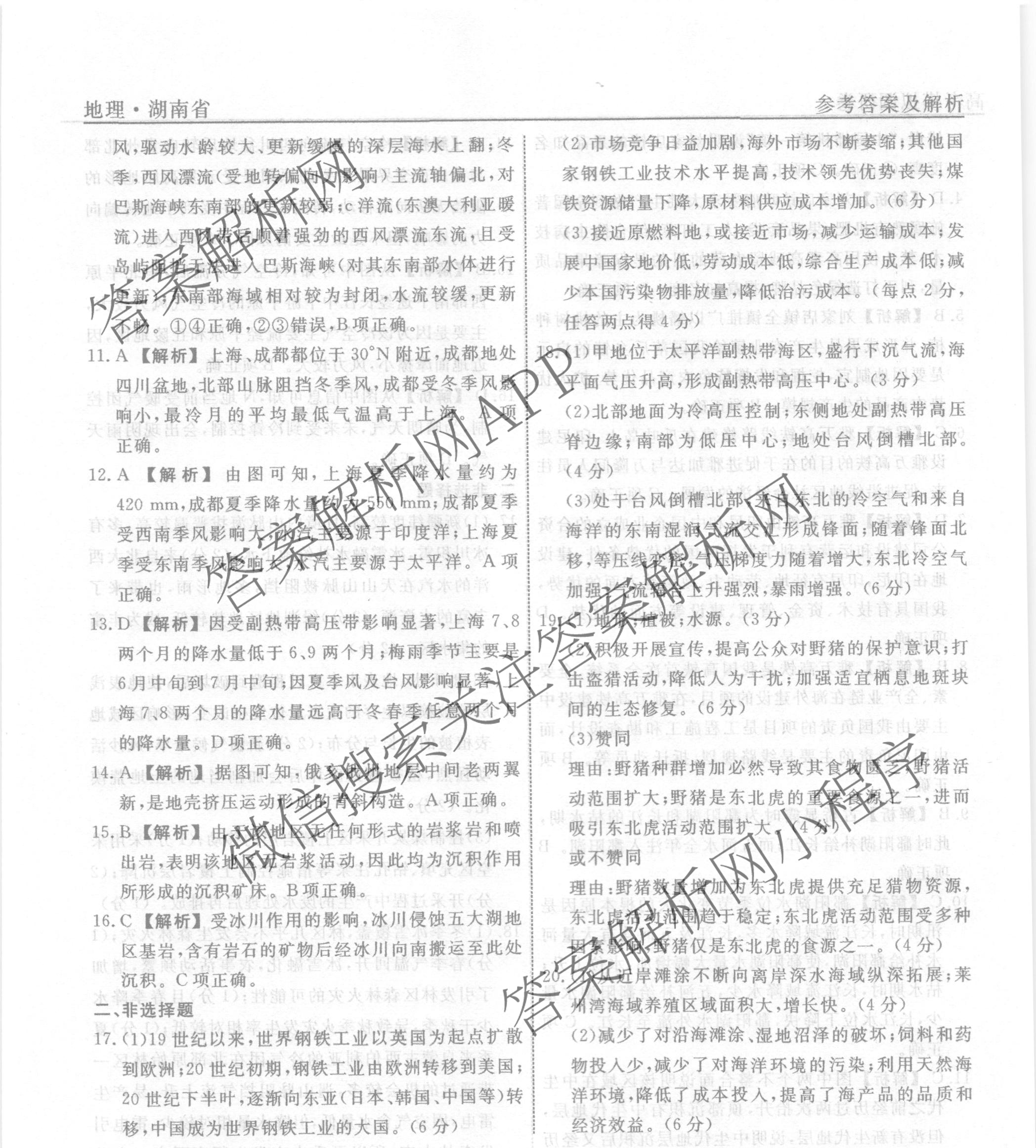 - (衡水名师卷)湖南省2023年高考模拟调研卷 地理(二)2答案