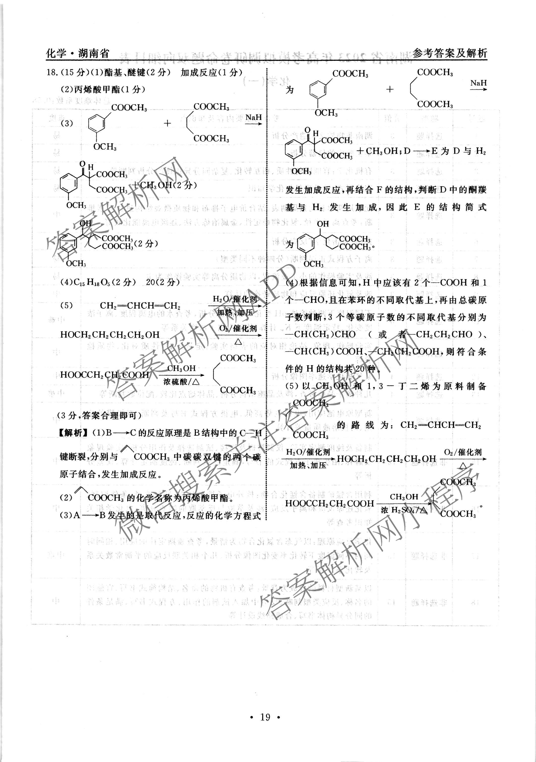 - [衡水名师卷]湖南省2023年高考模拟调研卷 化学(五)5答案