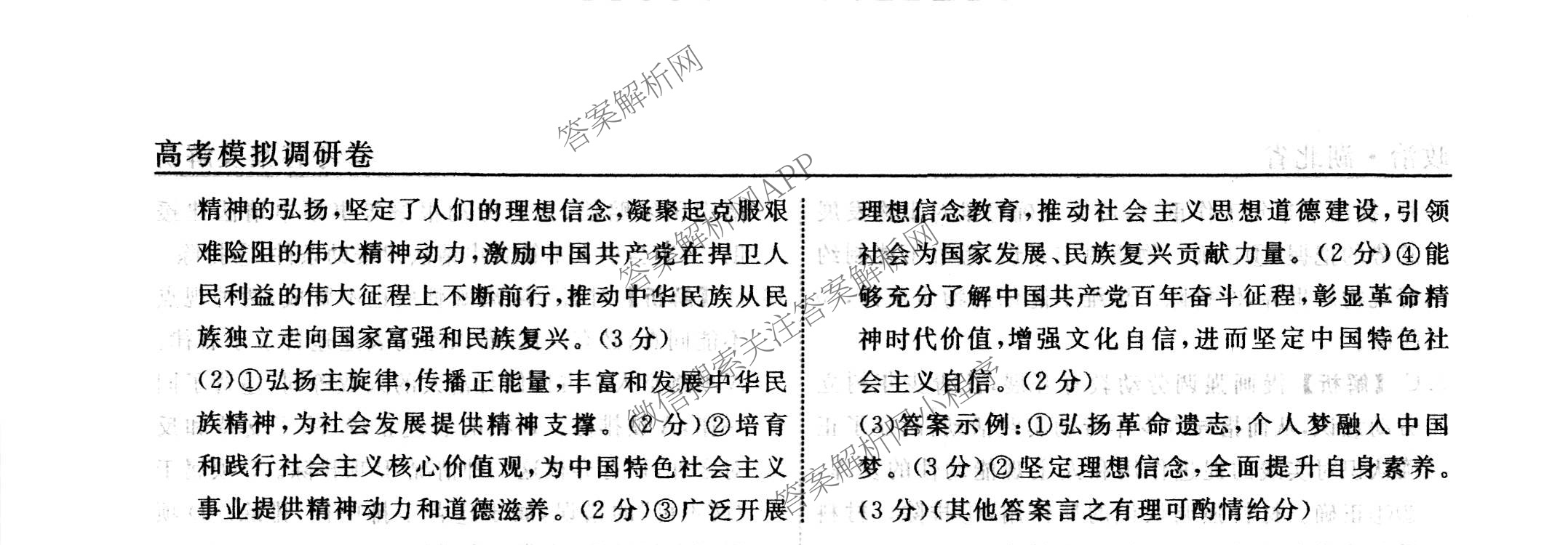 - (高三)(衡水名师卷)湖北省2023年高考模拟调研卷 政治(二)2答案