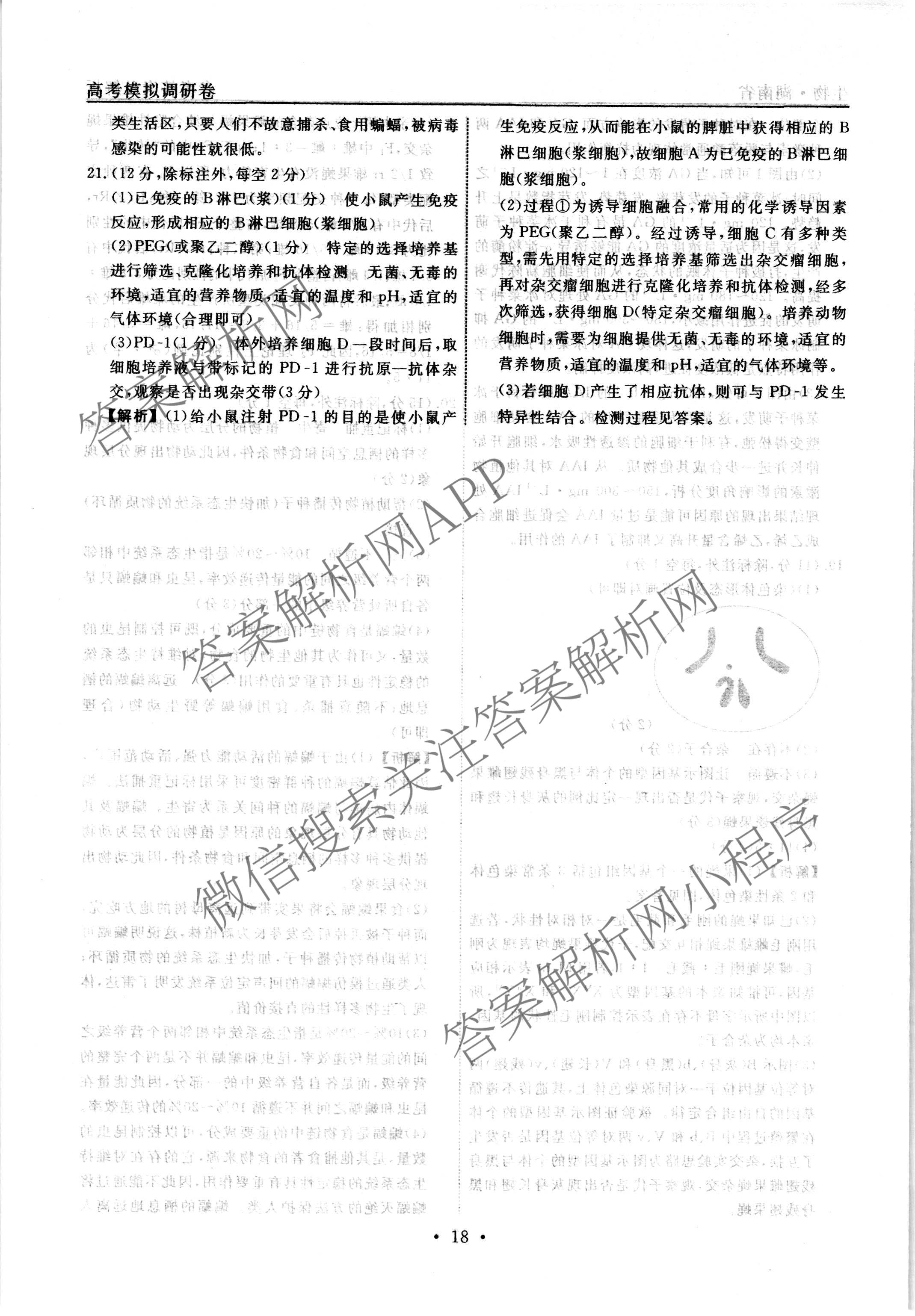 - (衡水名师卷)·湖北省2023年高考模拟调研卷 生物(五)5答案