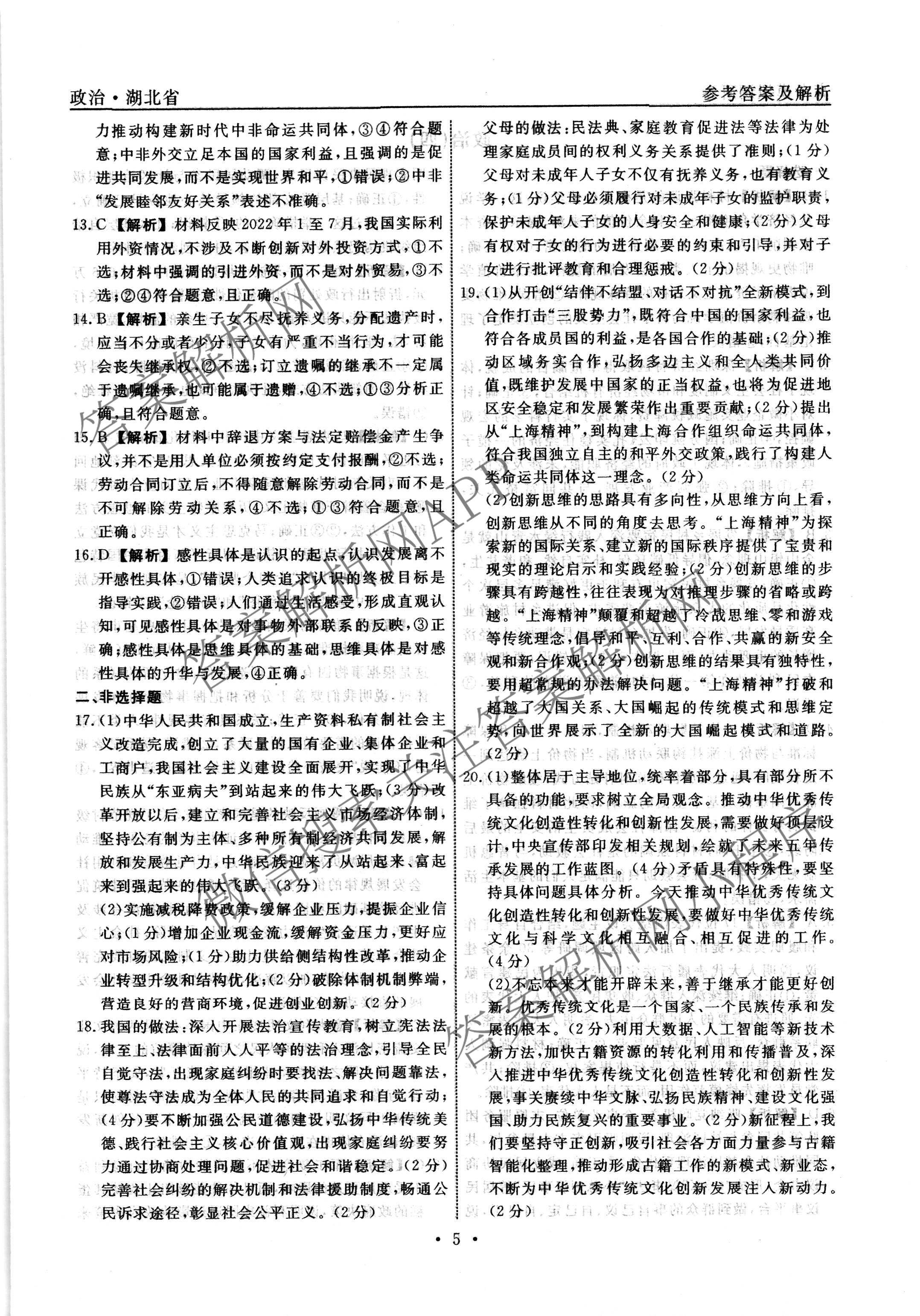 - (高三)(衡水名师卷)湖北省2023年高考模拟调研卷 政治(三)3答案