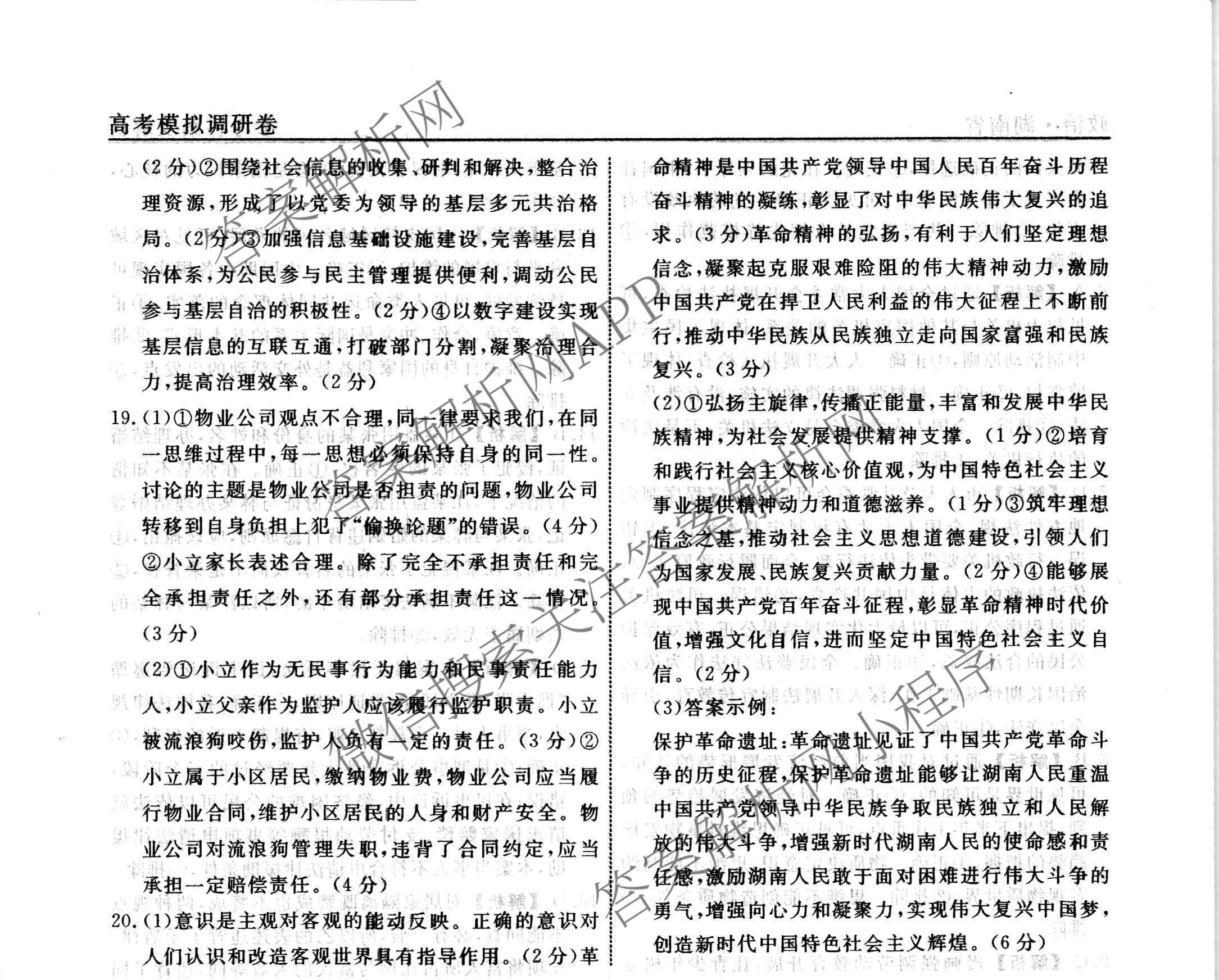 - (高三)(衡水名师卷)湖北省2023年高考模拟调研卷 政治(二)2答案