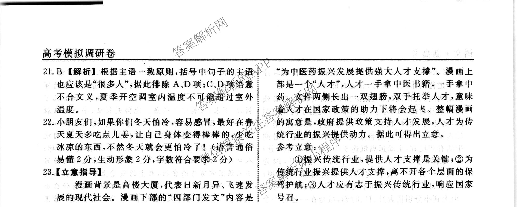 - 2022-2023[高三](衡水名师卷)·高考模拟调研卷 语文(新高考)(四)4答案