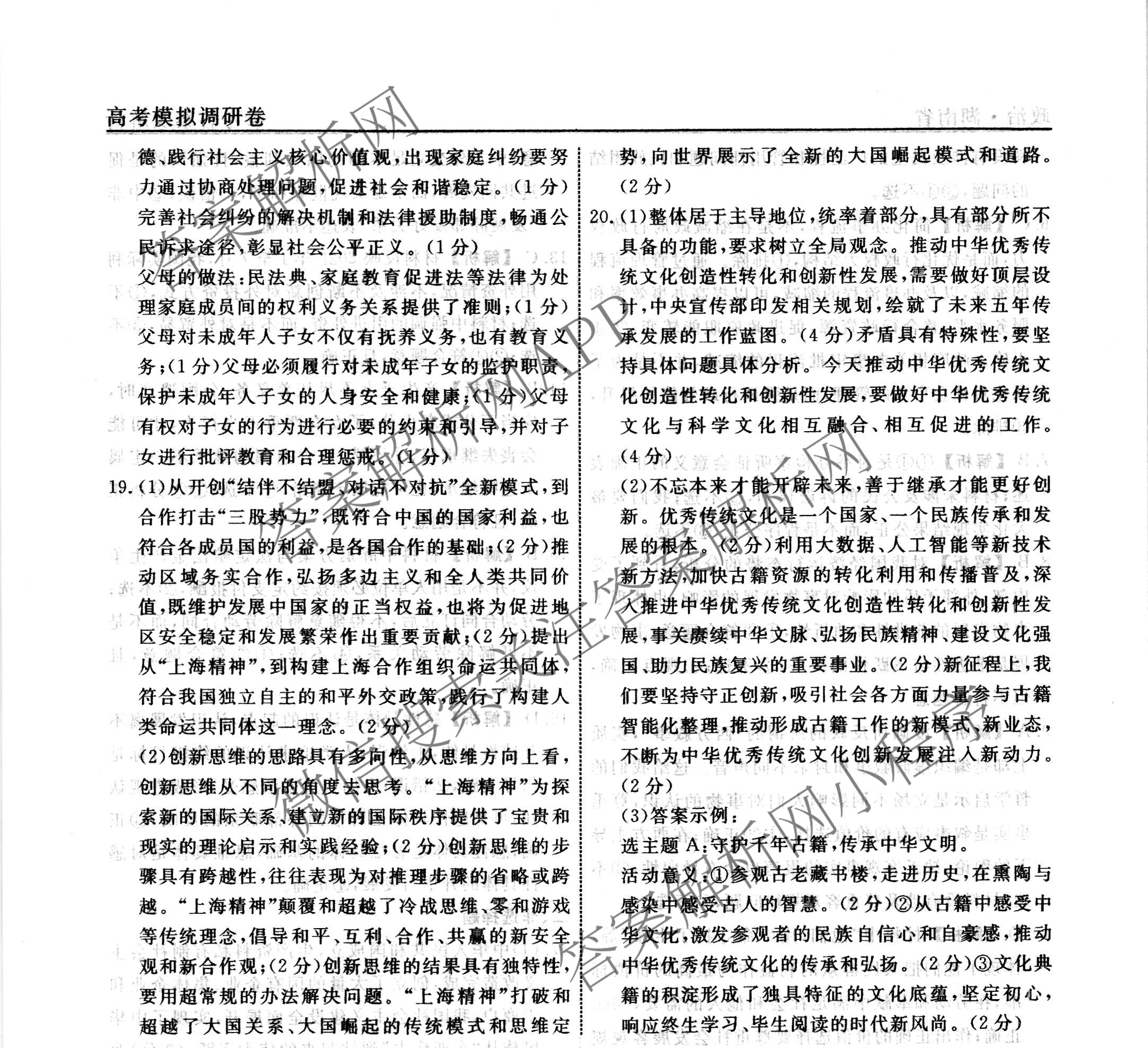 - (高三)(衡水名师卷)湖北省2023年高考模拟调研卷 政治(三)3答案