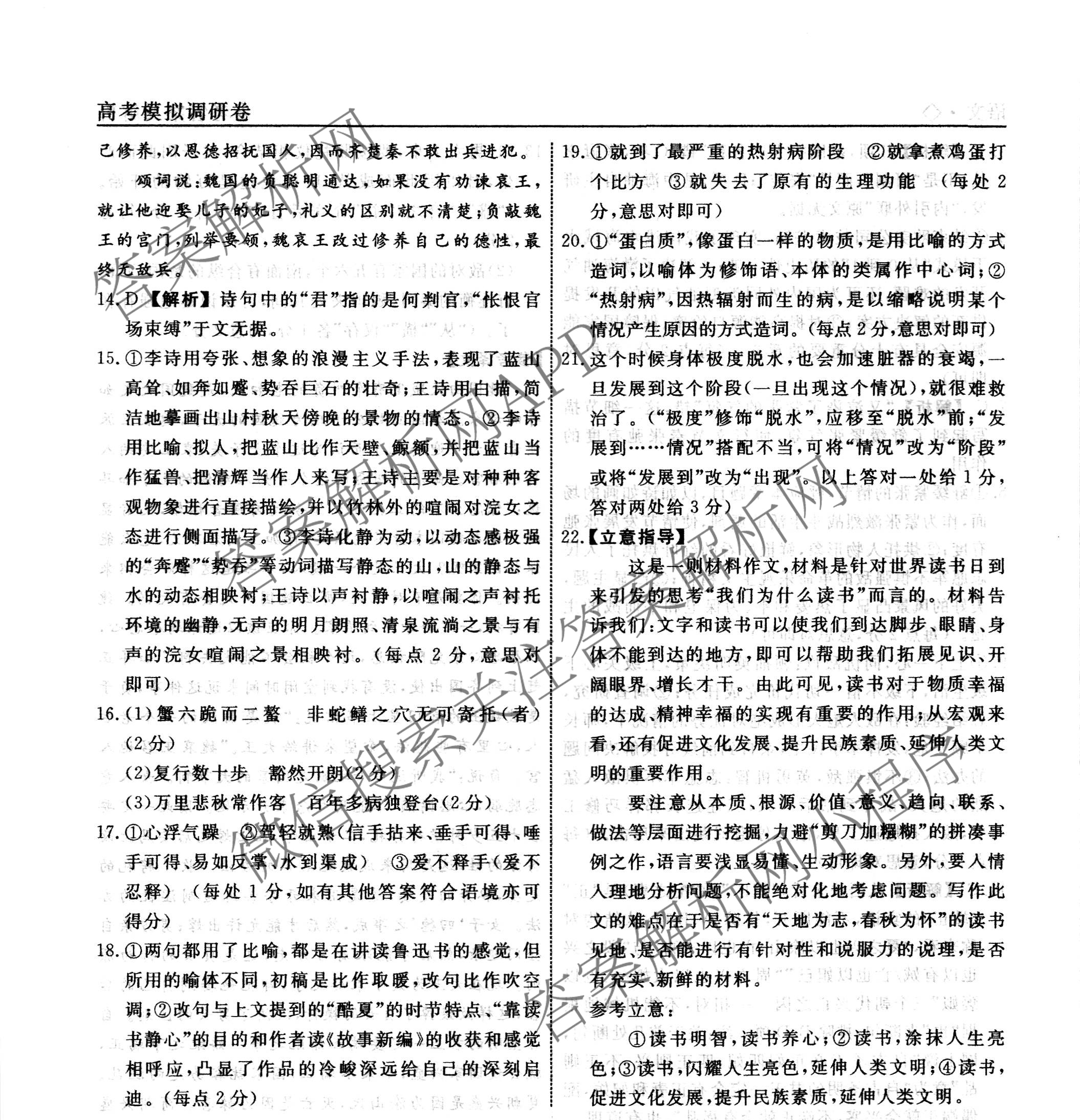 - 2022-2023(高三)(衡水名师卷)·高考模拟调研卷 语文(空心◇)(三)3答案