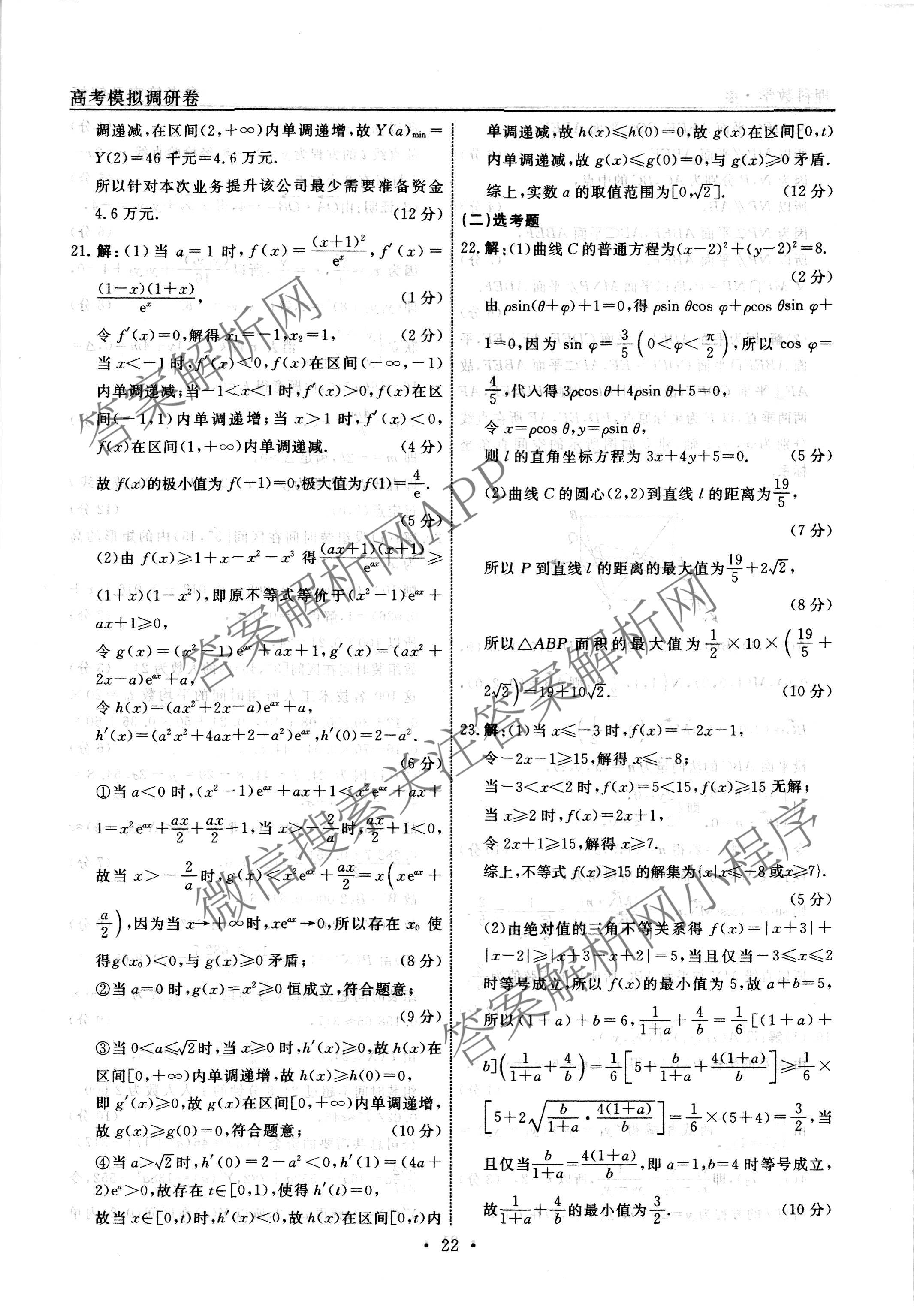 - 2022-2023[高三][衡水名师卷]·高考模拟调研卷 文数(※)(五)5答案