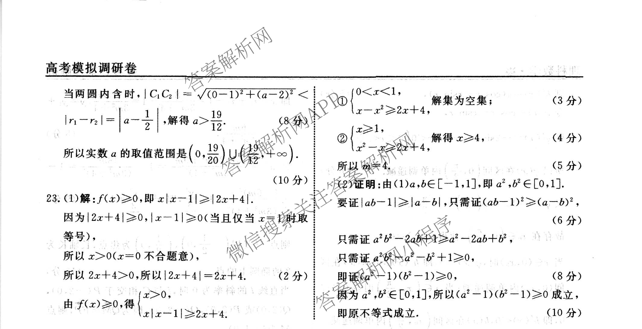 - 2022-2023衡水名师卷高考模拟调研卷 文数(※)(三)3答案