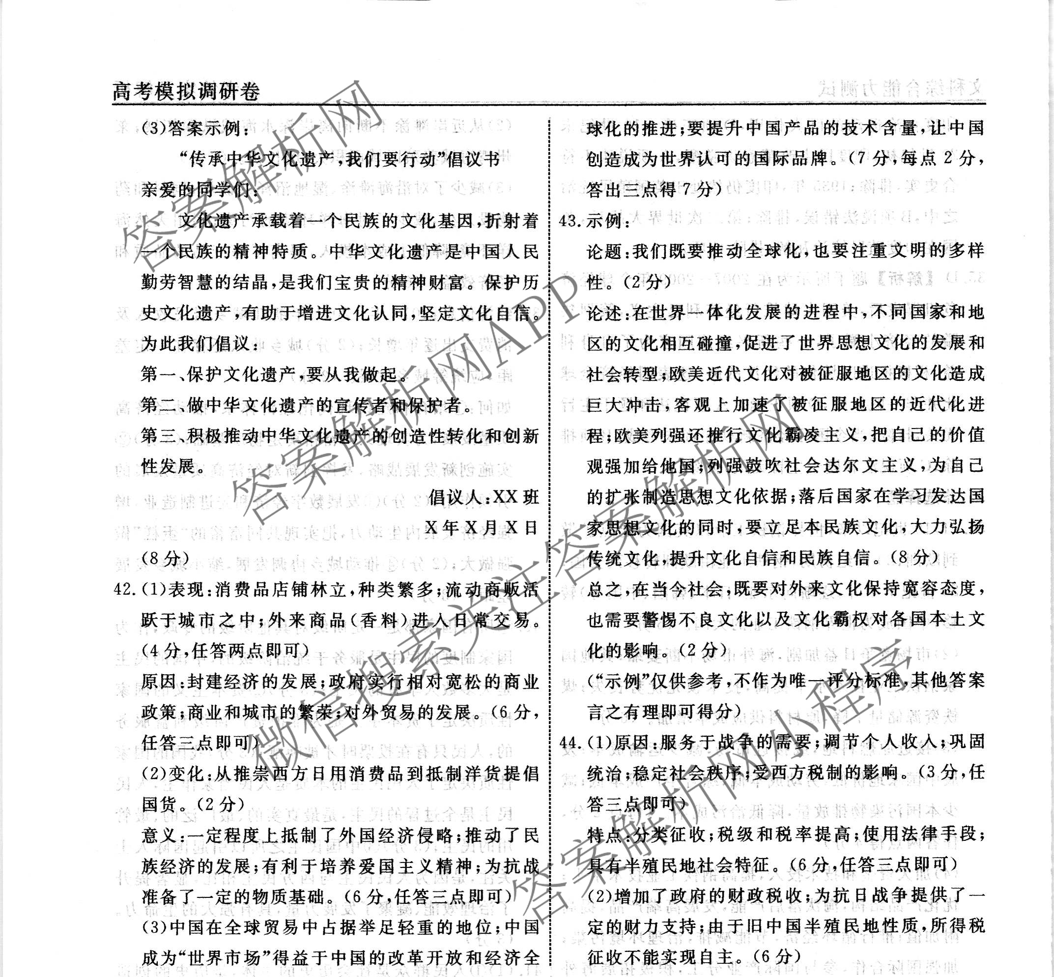 - 2022-2023(高三)衡水名师卷高考模拟调研卷 文综(实心◇)(二)2答案