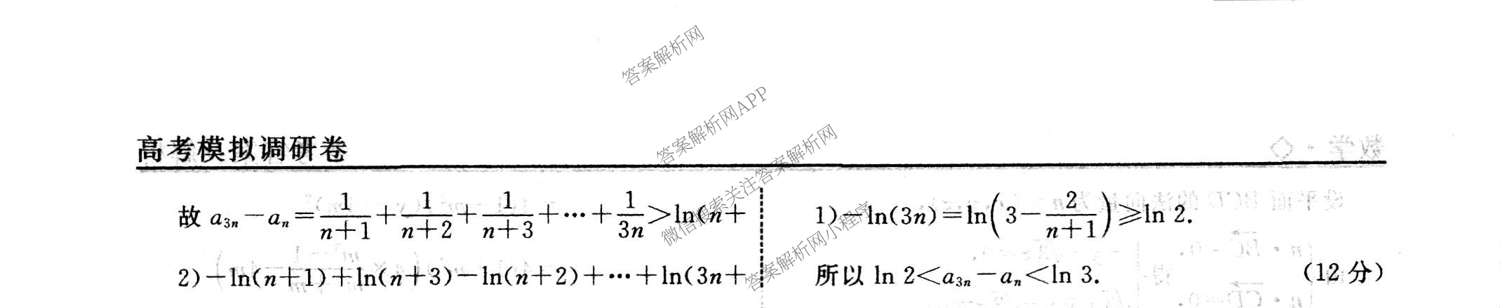 - [高三](衡水名师卷)2022~2023高考模拟调研卷 文数(实心◇)(四)4答案