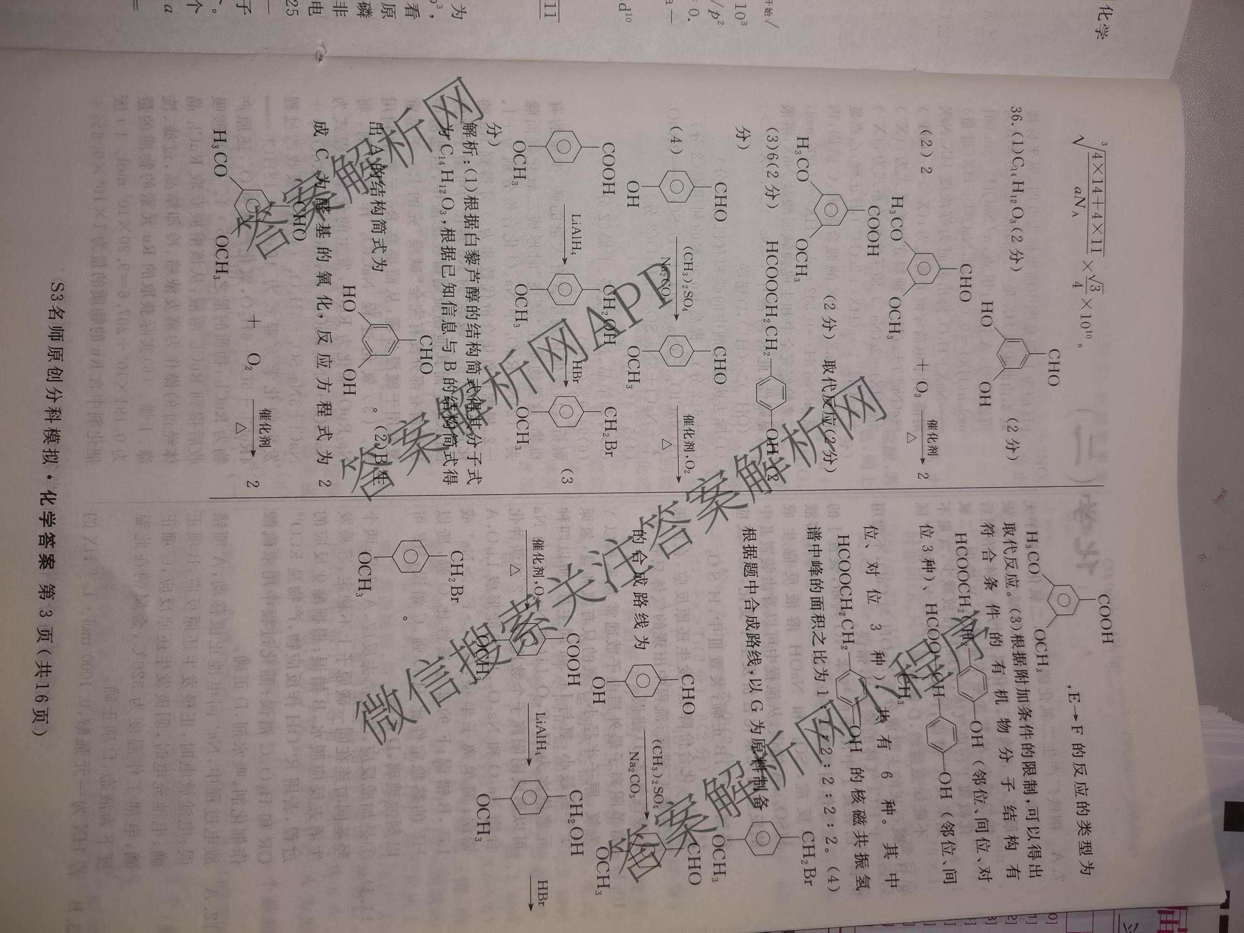 2023届[高三]总复习S3名师原创模拟化学(一)1答案