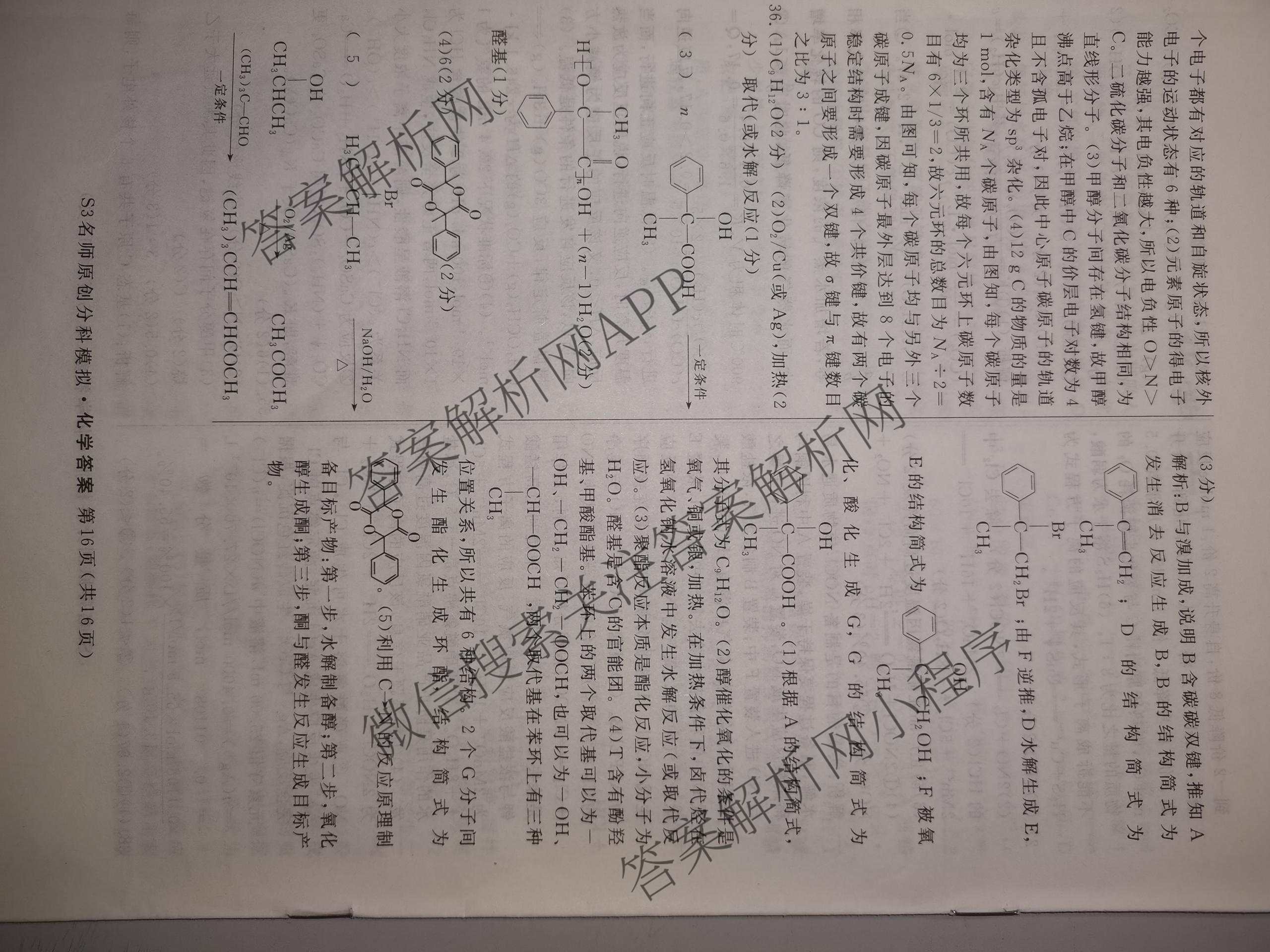 2023届(高三)总复习S3名师原创模拟化学(五)5答案
