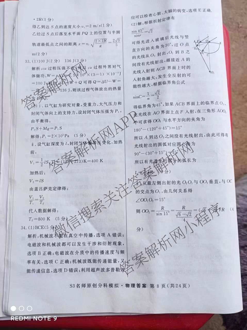2023届(高三)总复习S3名师原创模拟物理(二)2答案