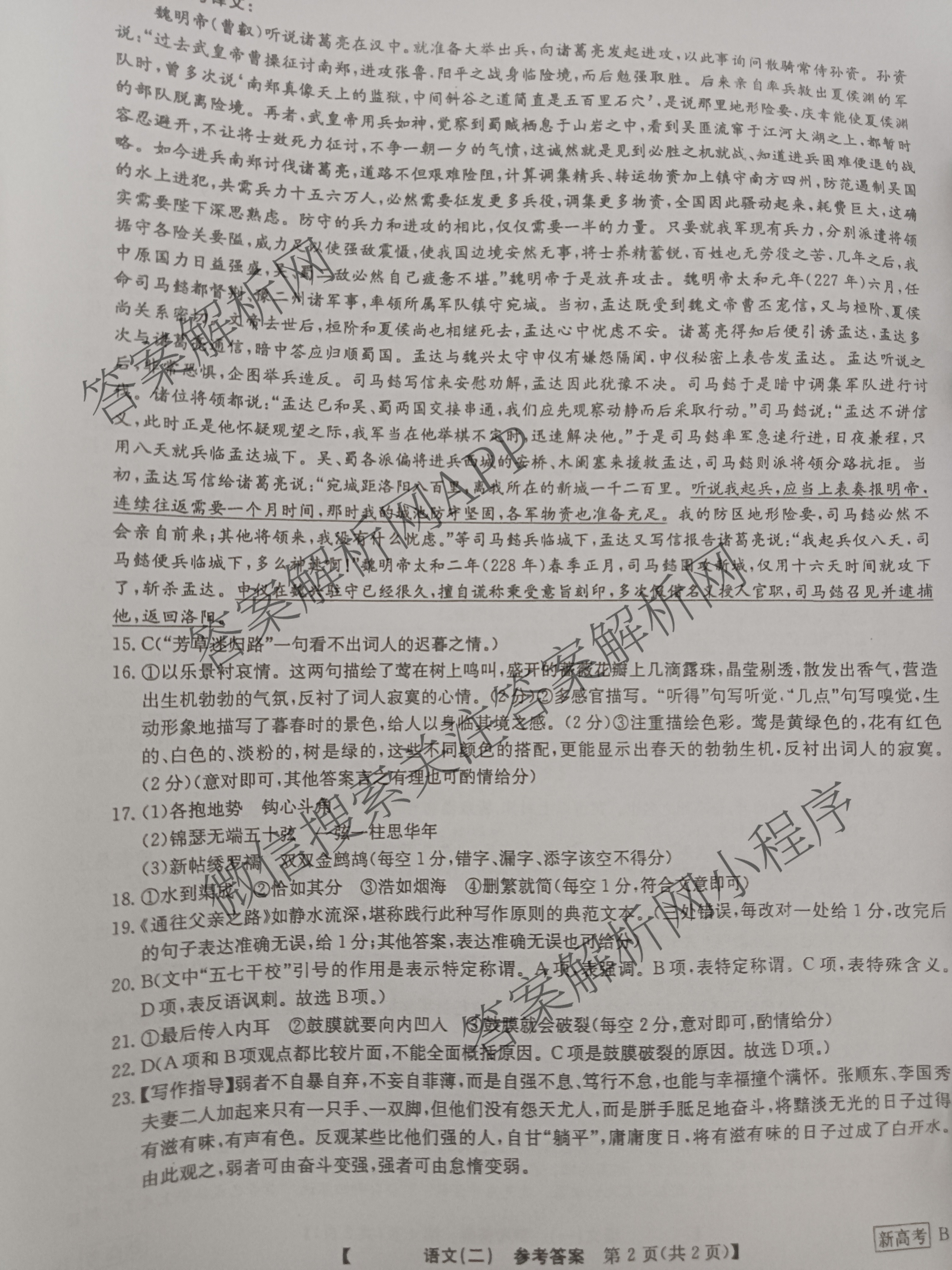 高三2023届全国新高考分科综合模拟测试卷语文(二)2答案