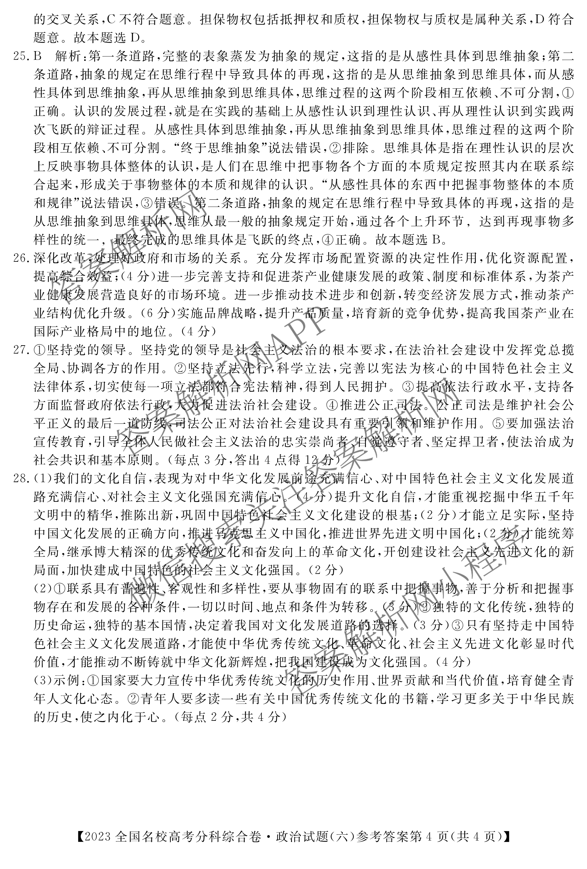 [华普教育]2023全国名校高考分科综合卷政治(六)6答案