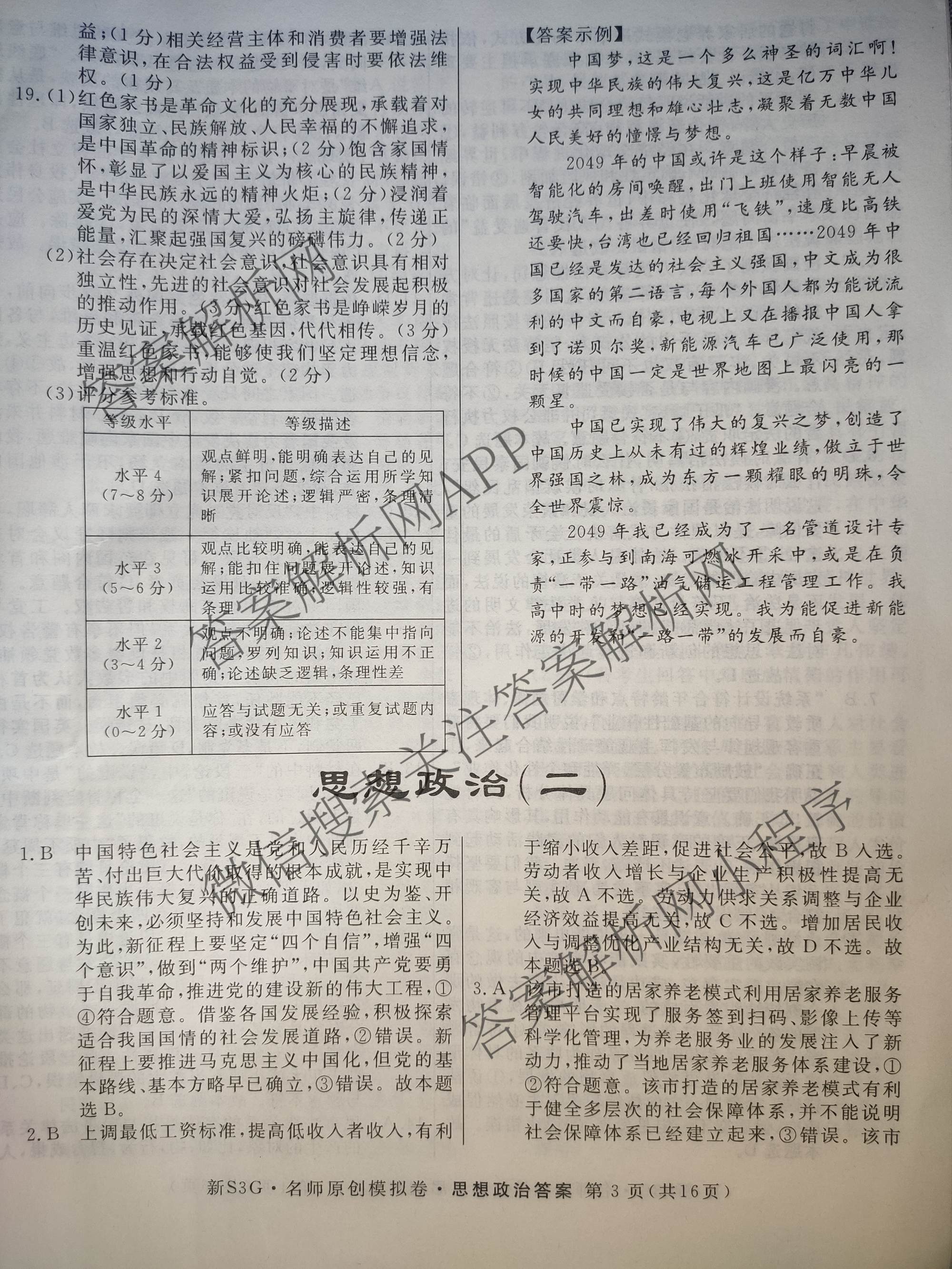 2023届[高三]总复习新S3G名师原创模拟政治(一)1答案