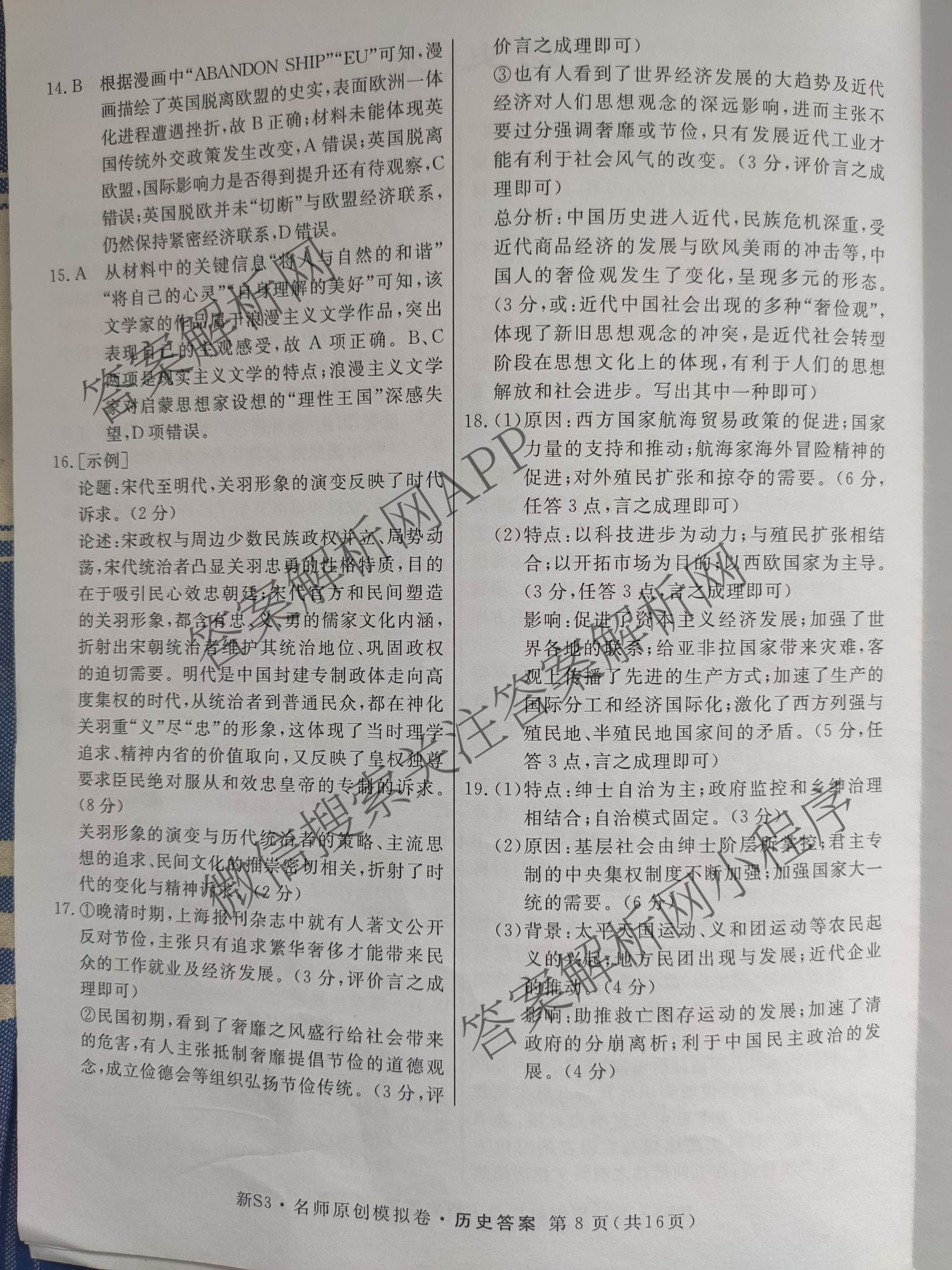 2023届高三总复习S3名师原创模拟 历史(新S3)(九)9答案