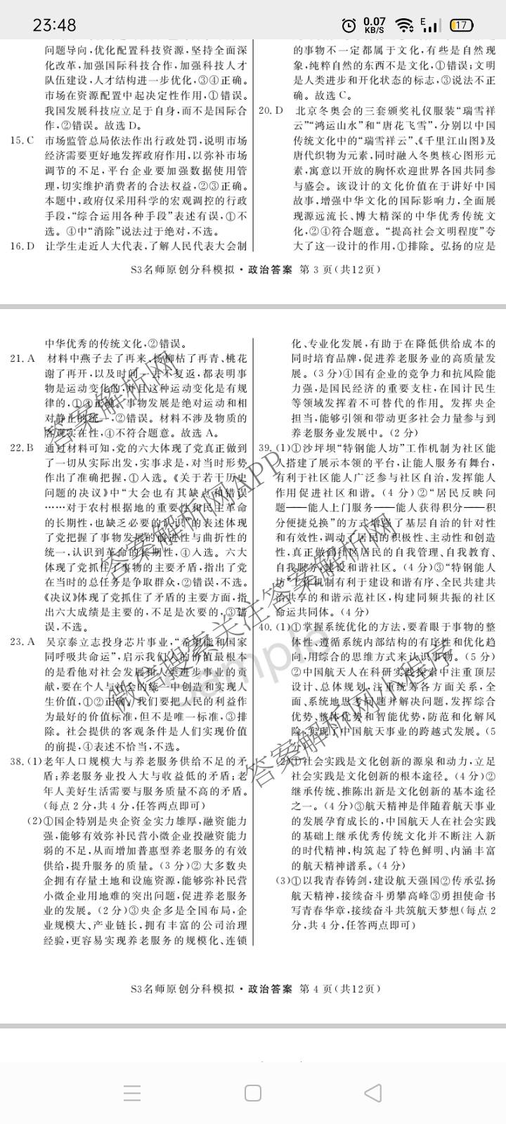 - 2023届(高三)总复习S3名师原创模拟 政治(新S3)(二)2答案