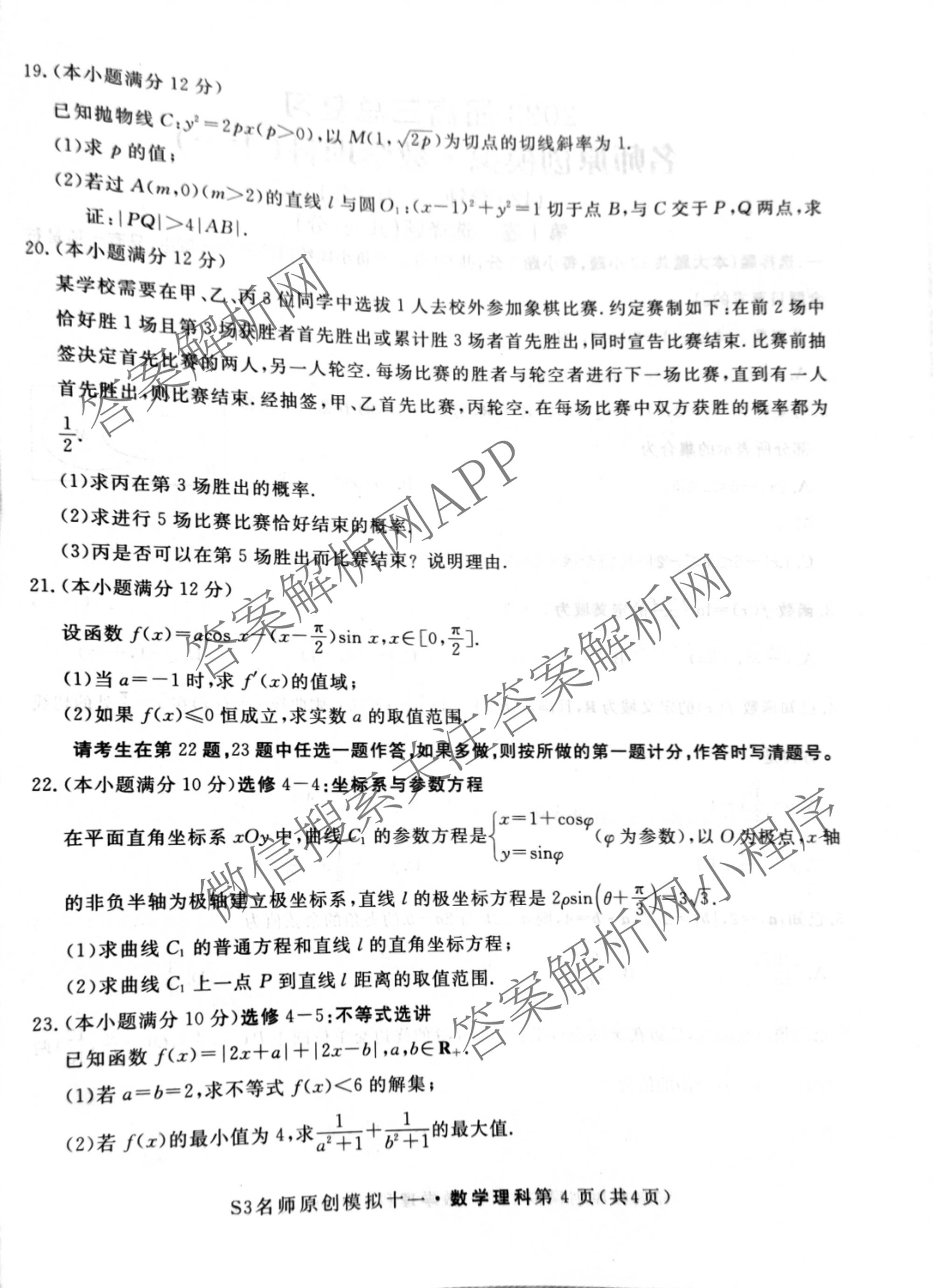 2023届高三总复习·S3名师原创模拟理数(十一)11试题,目前分科卷答案网已经汇总了2023届高三总复习·S3名师原创模拟理数(十一)11试题的各科答案和试卷,获取更多高三总复习·名师原创模拟答案解析,请在关注本站。